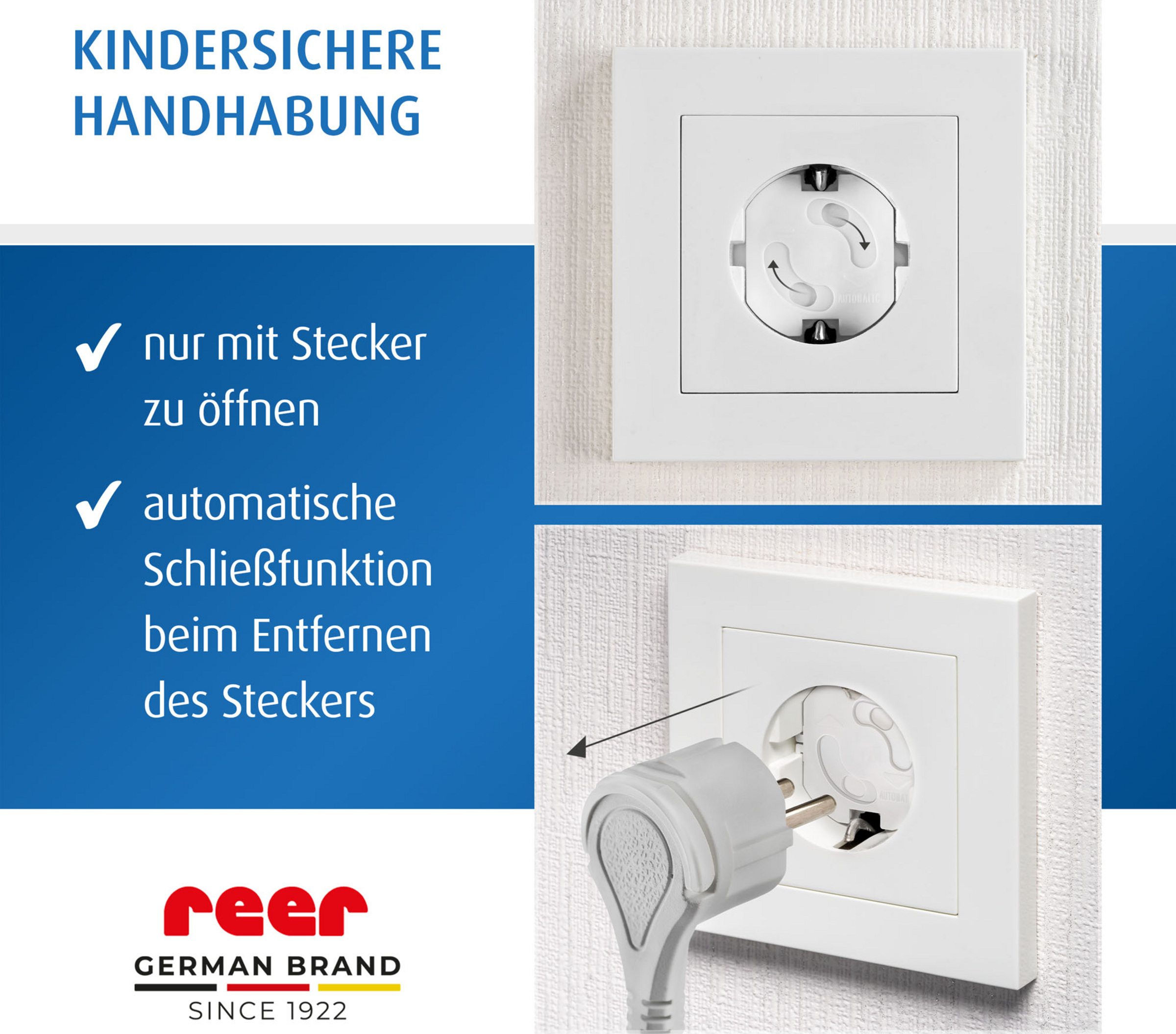 - verschließt automatisch beim Herausziehen des Steckers