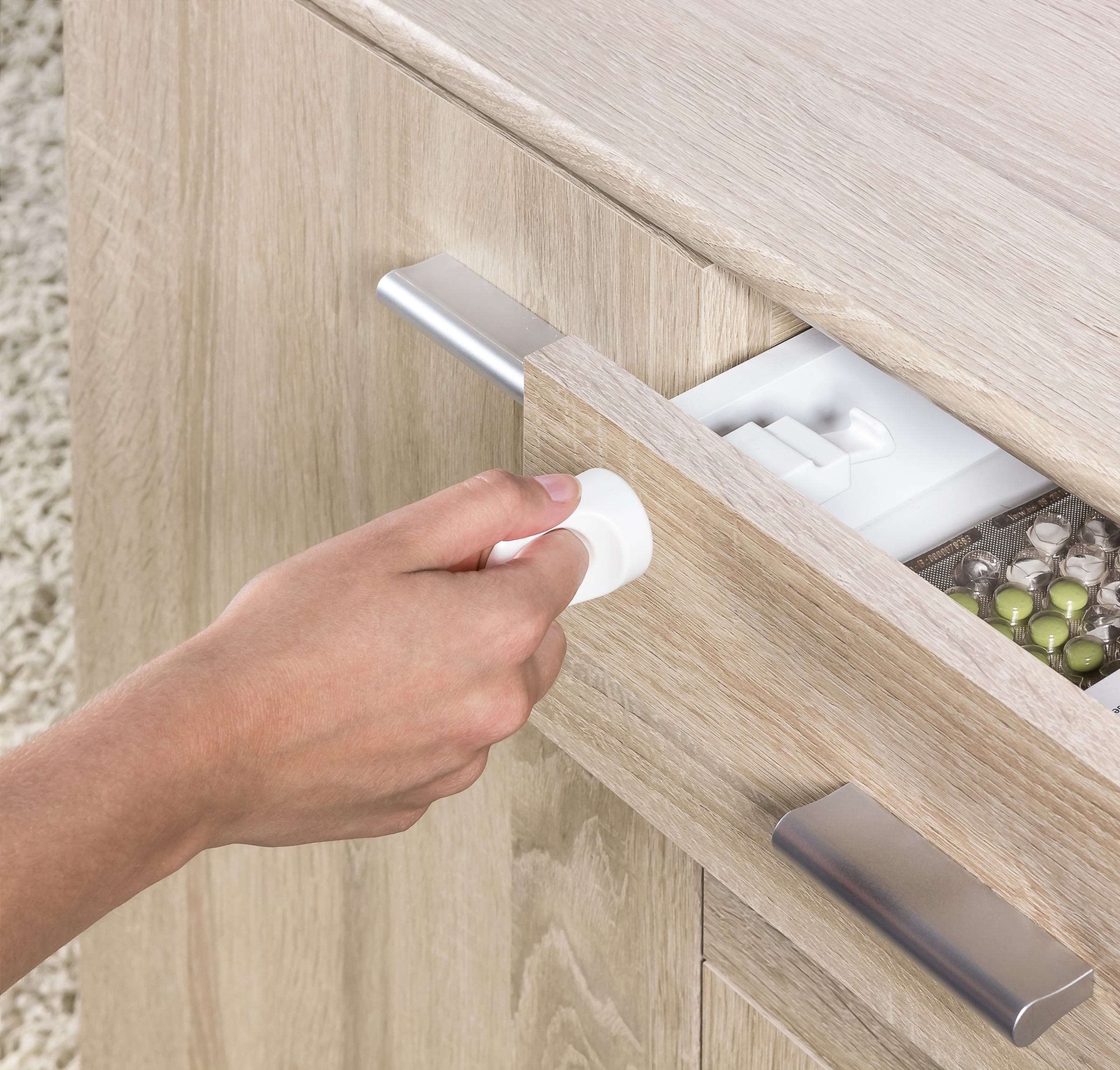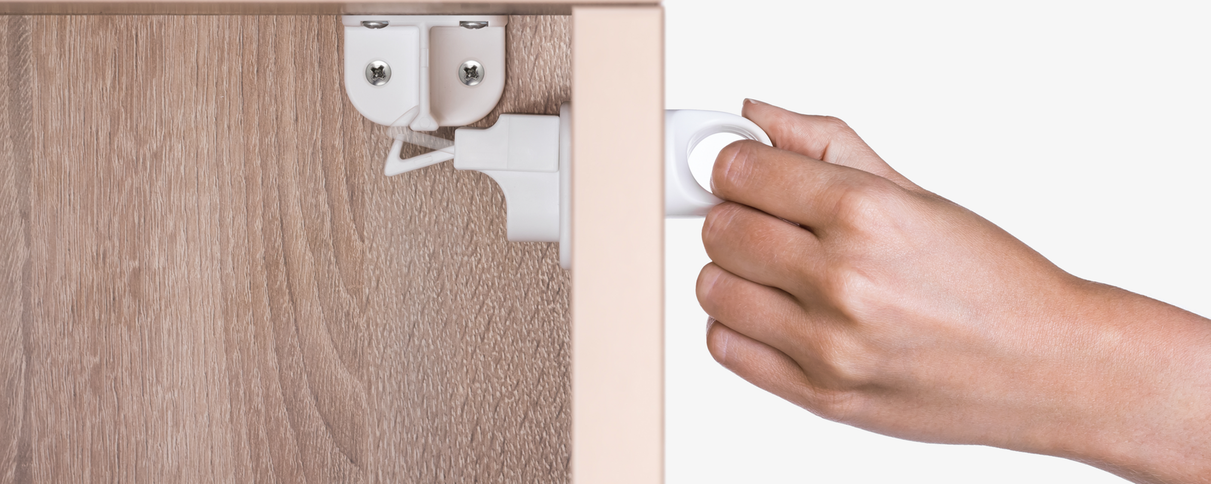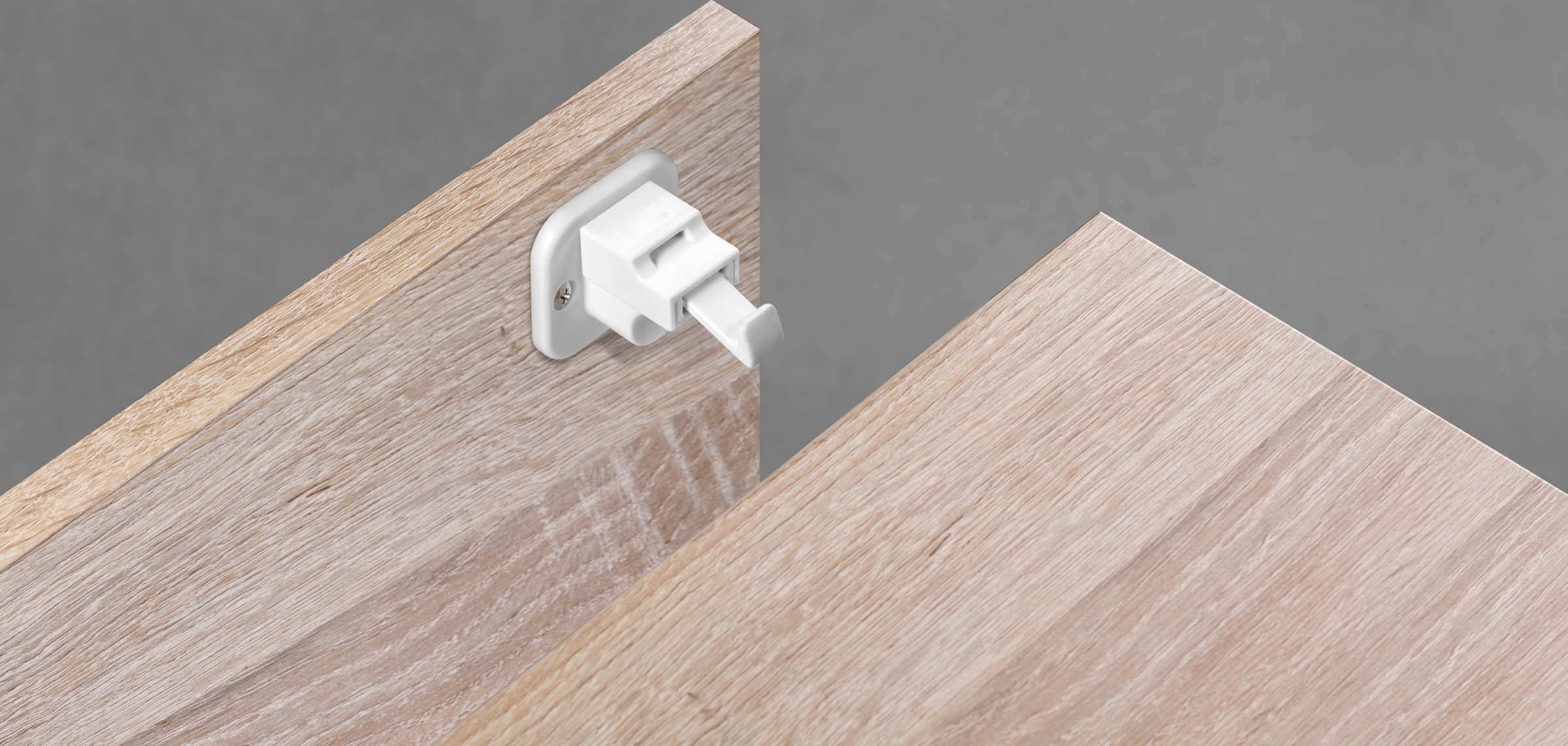 Die Inhalte von Schränken und Schubladen sind für die Kleinen besonders spannend. Sobald sie krabbeln und laufen lernen, erreichen sie die Griffe und kommen an Gegenstände heran, die nicht in Kinderhände gehören. Ihre Neugierde bewegt sie dazu, ihre Umgebung zu erkunden. Vor ihrem natürlichen Entdeckungsdrang ist nun kaum noch etwas sicher. So können schnell gefährliche Dinge, wie z.B. Messer oder Medikamente, in ihre Finger geraten. Schützen Sie Ihren Liebling vor Schubladen und Schränken mit gefährlichen Inhalten, indem sie diese mit einem Magnetschloss von reer sichern.