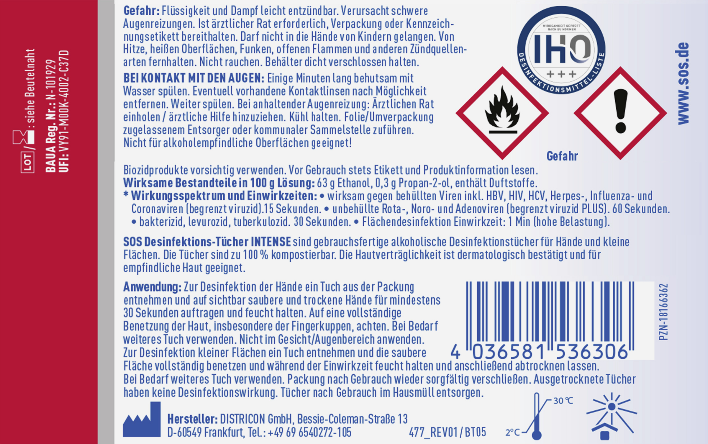 Bakterizid, tuberkulozid und levurozid gemäß EN-Prüfmethoden zur Flächendesinfektion – Einwirkzeit: 1 Minute.