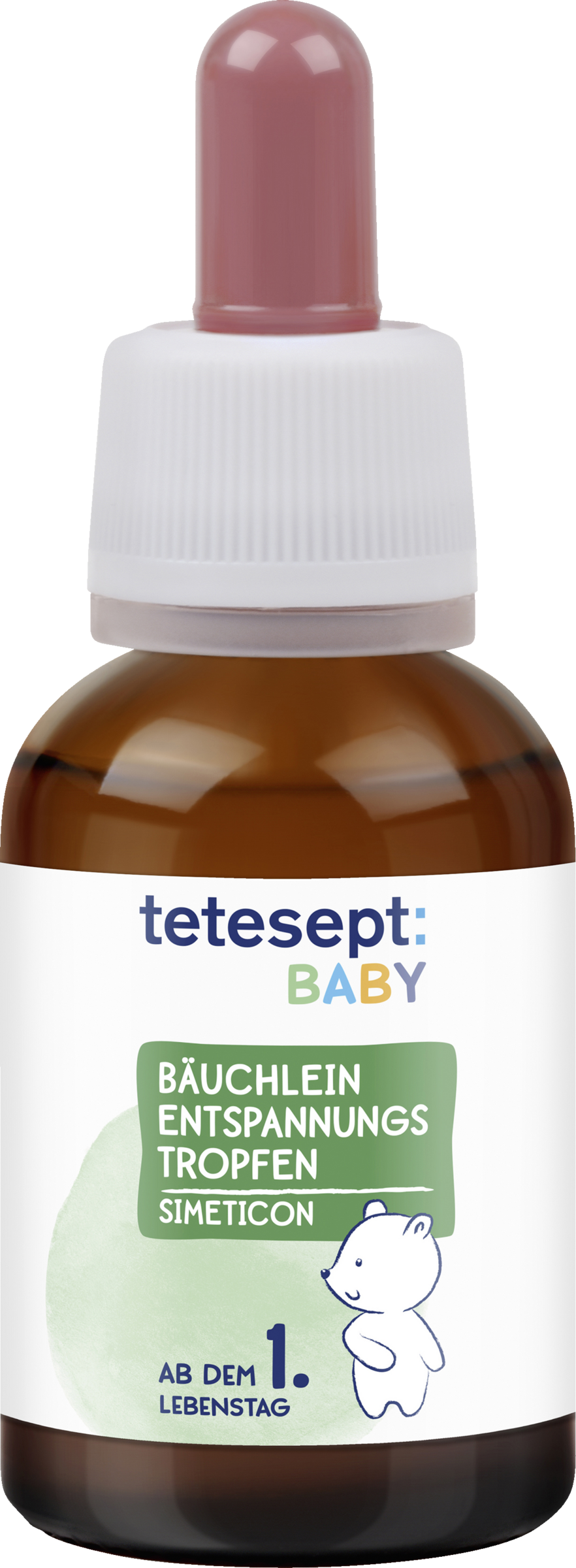 Der Simeticon-Gehalt beträgt 40 mg in 0,6 ml Lösung. Einzeldosis: 20 Tropfen tetesept Baby Bäuchlein Entspannungstropfen (= 0,6ml)