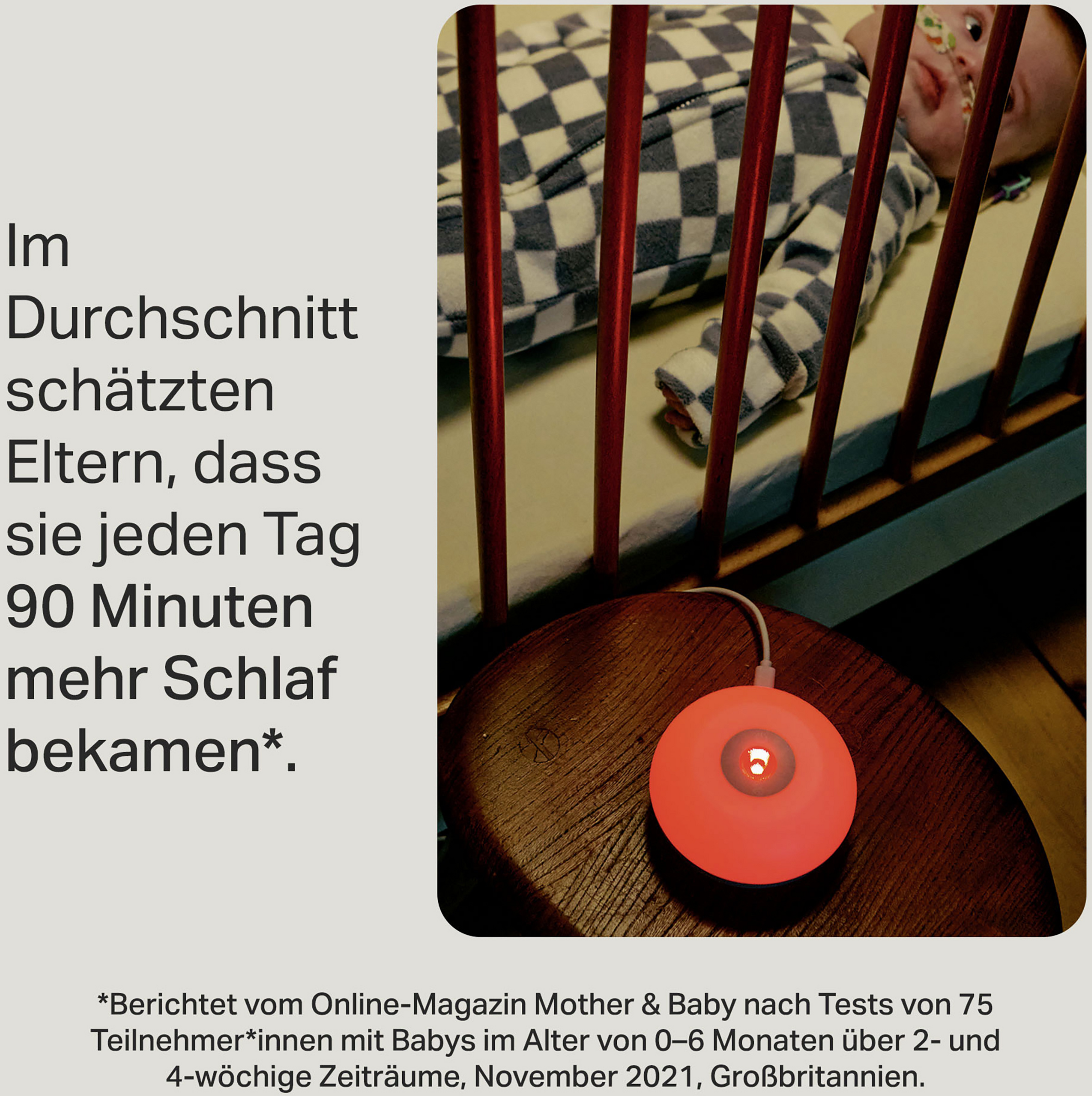 *Berichtet vom OnlineMagazin Mother & Baby nach Tests von 75 Teilnehmer*innen mit Babys im Alter von 0–6 Monaten über 2- und 4-wöchige Zeiträume, November 2021, Großbritannien.