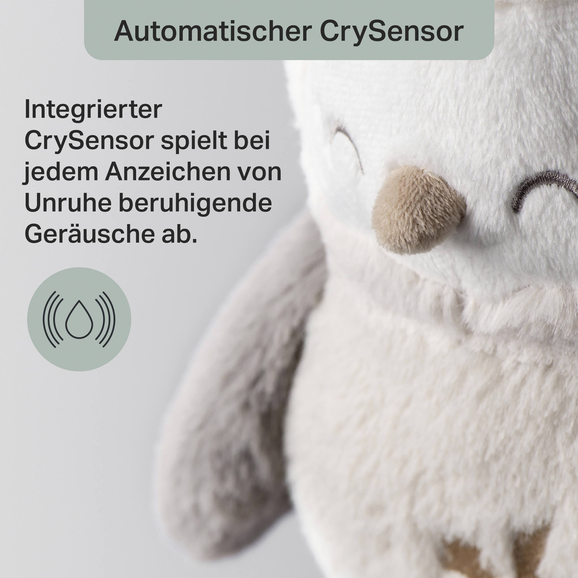 - hört die Schreie der Säuglinge und beruhigt automatisch