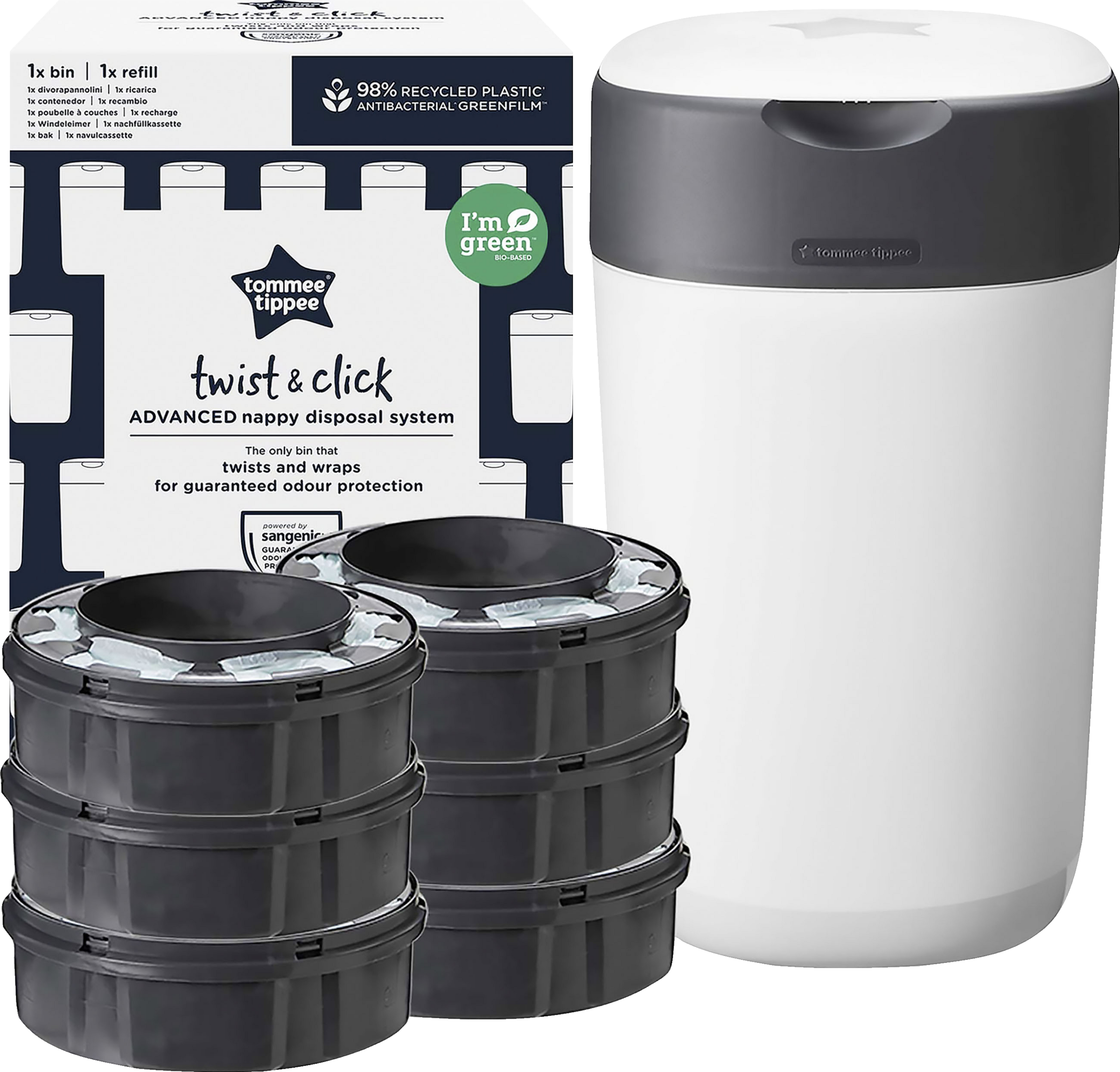 Tommee Tippee Twist & Click Advanced Windeleimer. Umweltfreundliches System, inkl. 6x Nachfüllkassette. Mit nachhaltig gewonnener, antibakterieller Greenfilm-Folie.