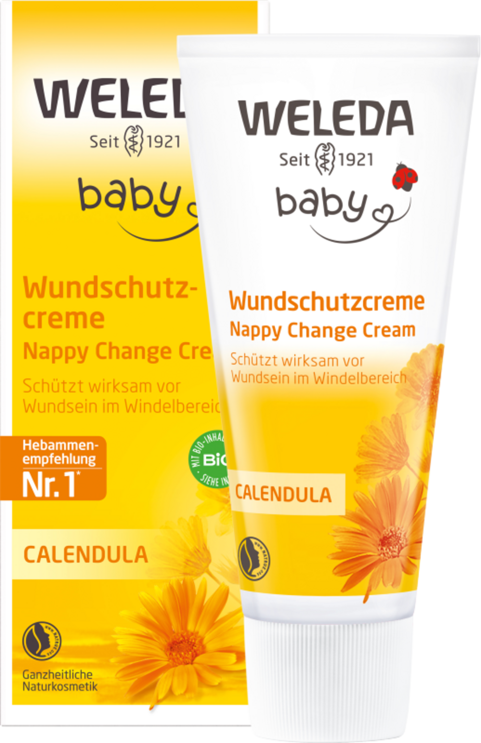 Die Calendula Wundschutzcreme schützt empfindliche Babyhaut und pflegt wirksam bei gereizter und geröteter Haut. Sie ist speziell für den Windelbereich geeignet.