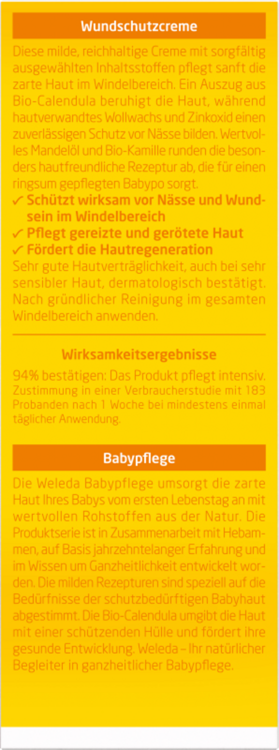 Die Weleda Calendula Wundschutzcreme schützt die empfindliche Haut in Babys Windelbereich auf natürliche Weise. Sie beugt dem Wundwerden vor und pflegt wirksam bei gereizter und geröteter Haut. Wertvolles Mandelöl und Sesamöl aus kontrolliert-biologischem Anbau pflegen die Haut sanft und fördern die Hautregeneration.