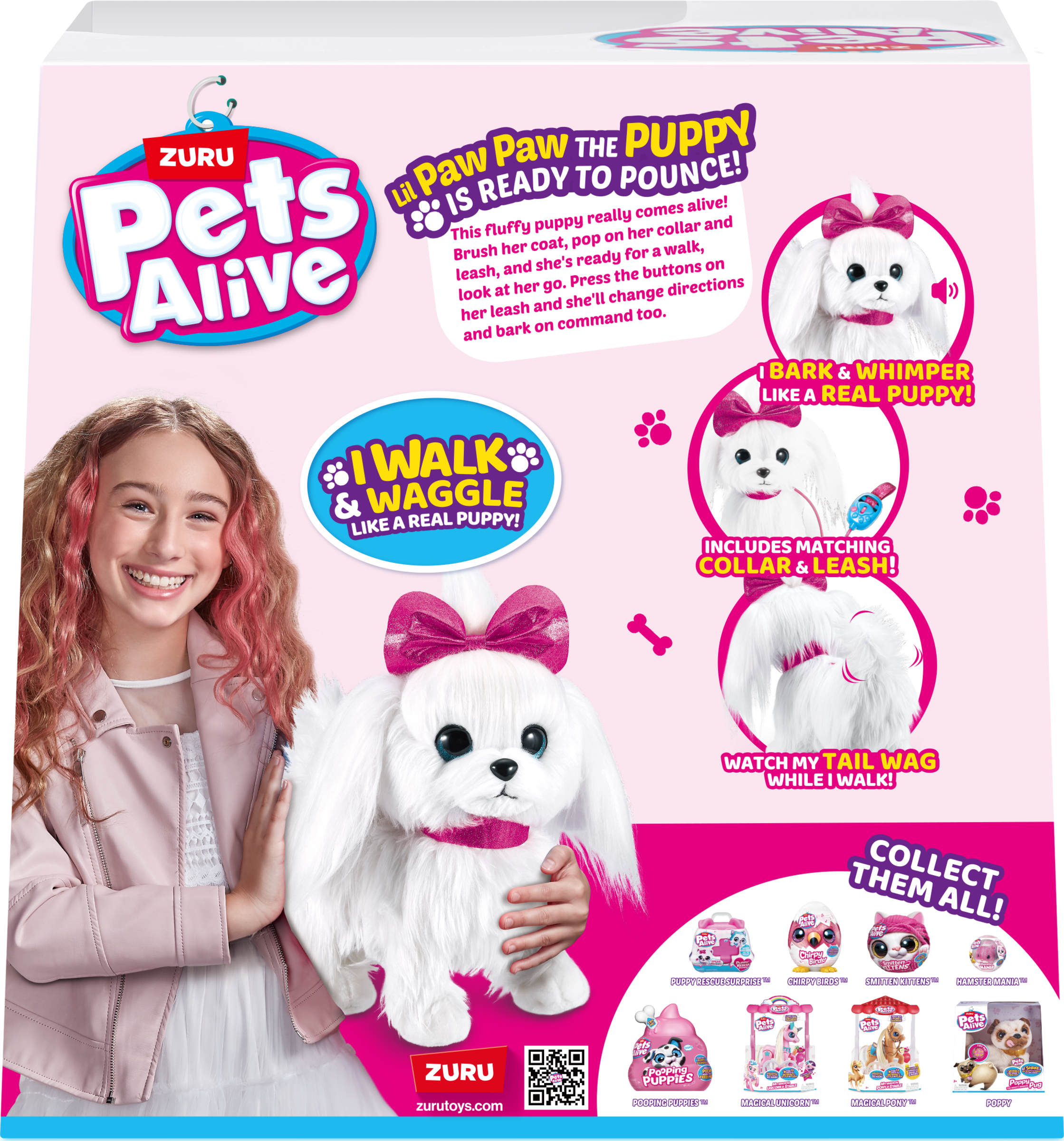 Wer ist das flauschigste, niedlichste und glamouröseste Hündchen der Welt? Natürlich Lil' Paw Paw! Dieses perfekt geliebte klassische Design mit einem modernen Twist wird Teil der Pets Alive Familie. Das seidenglatte Fell dieser prächtigen Malteserin ist ideal zum Bürsten und Kuscheln, und ihre glitzernden blauen Augen funkeln fast so sehr wie ihre perfekt rosa Schleife und ihr Halsband. Lil' Paw Paw läuft vorwärts, um sich all deinen Freunden zu präsentieren, und bellt wie ein echtes Hündchen! Batteriebetrieben.