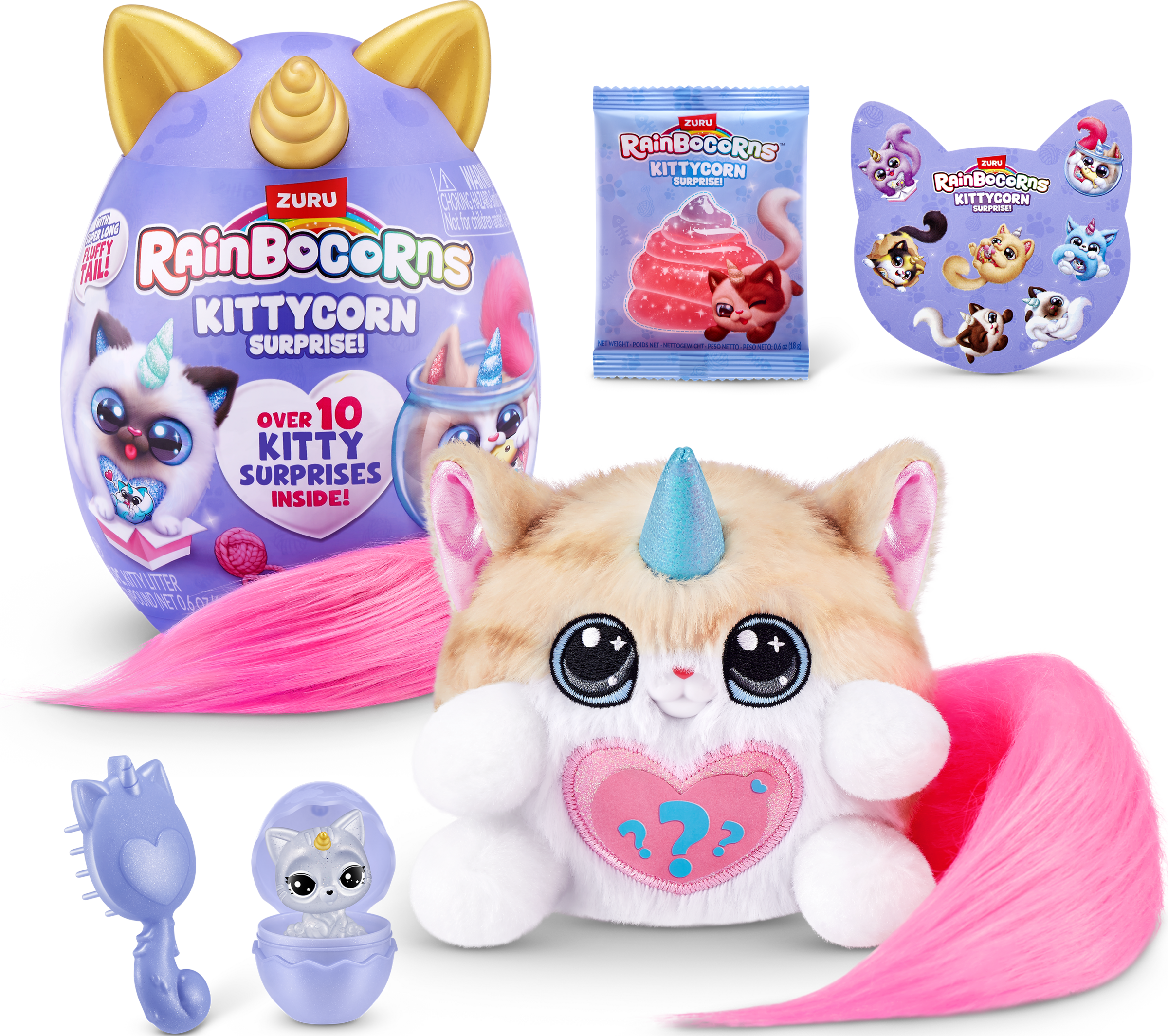 In Rainboville sind bezaubernde Kätzchen zur Welt gekommen und sie wollen jetzt in Kittycornia spielen. Mit ihren superweichen, superlangen, flauschigen Schwänzen werden die Kittycorns bestimmt schnell zu deinen besten Freunden. Welches Kittycorn wirst du entdecken? Kämme deinen neuen Liebling mit dem mitgelieferten Kamm und vergiss nicht, auch dein Boo-Boocorn aus dem Ei zu holen, entdecke mehr als 10 niedliche Überraschungen!