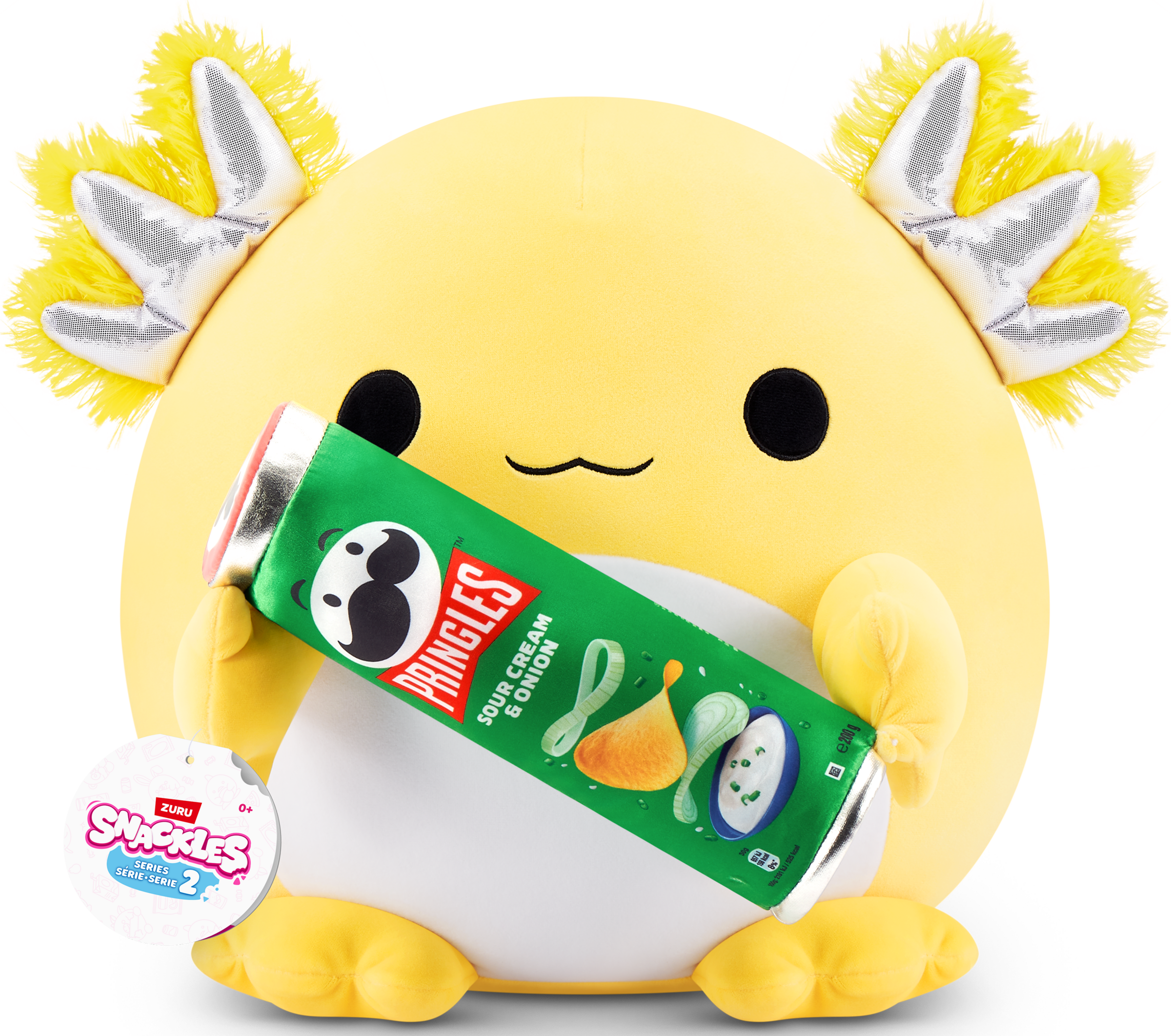 Snackles sind superweiche, ultraknuddelige Plüschspielzeuge, die ihren Lieblingssnack in ihren Armen halten! Stille deinen Kuschelbedarf mit diesem knuddeligen 35 cm großen Plüschspielzeug! Alle Snackles werden mit einer Beschreibung geliefert, in der du alles über deinen neuen plüschigen Freund erfährst! Schluss mit hungrig, es gibt 10 neue Snackles zum Sammeln! Welchen magst du am liebsten, den Hershey Hai oder vielleicht lieber das Krispy Kreme Axolotl?