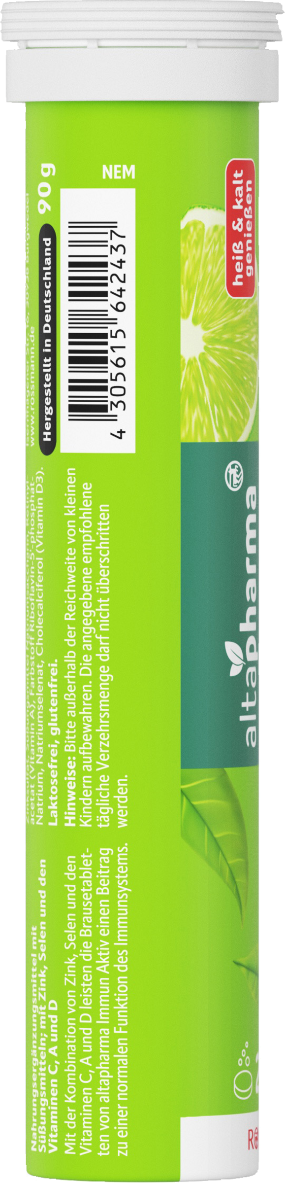 Mit der speziellen Kombination von Zink, Selen und den Vitaminen C, A und D leisten die Brausetabletten von Altapharma Immun Aktiv, die sowohl heiß als auch kalt genossen werden können, einen Beitrag zu einer normalen Funktion des lmmunsystems.
