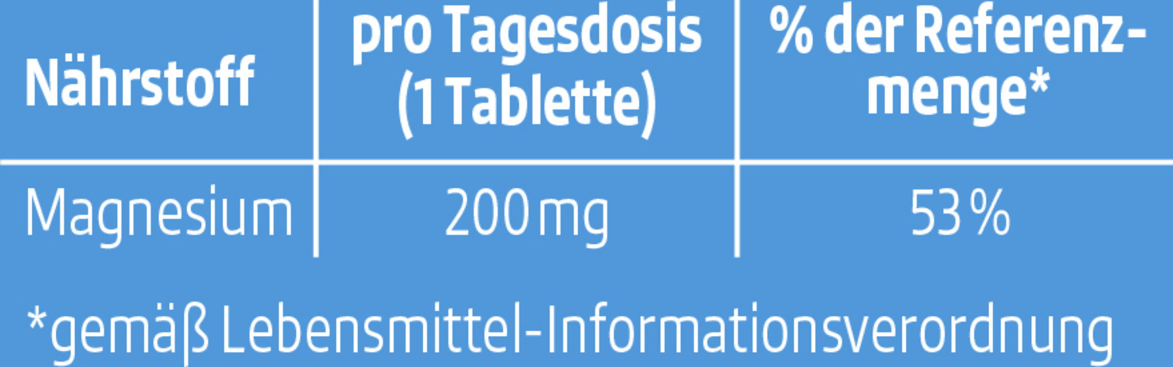 Magnesium ist ein wichtiger Mineralstoff, der zur normalen Muskelfunktion, zur Elektrolytbalance sowie zur Aufrechterhaltung von Knochen und Zähnen beiträgt. Zudem trägt Magnesium zu einem normalen Energiestoffwechsel und zur Verringerung von Müdigkeit und Ermüdung bei.