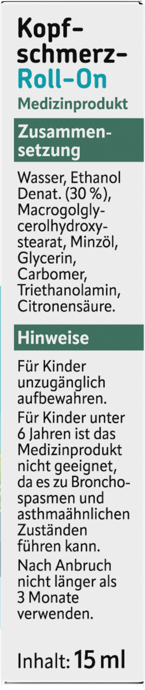 Roll-On mit Gel zu 15 ml Inhalt zur äußerlichen Anwendung auf der Haut.