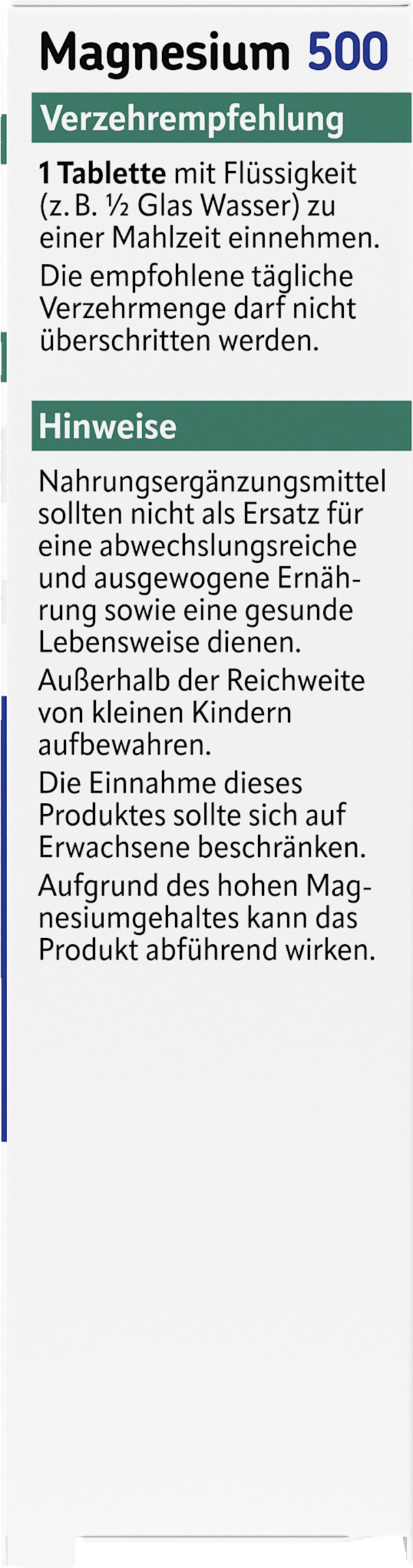 | Magnesium | 500,0 mg | 133,0 % | ||