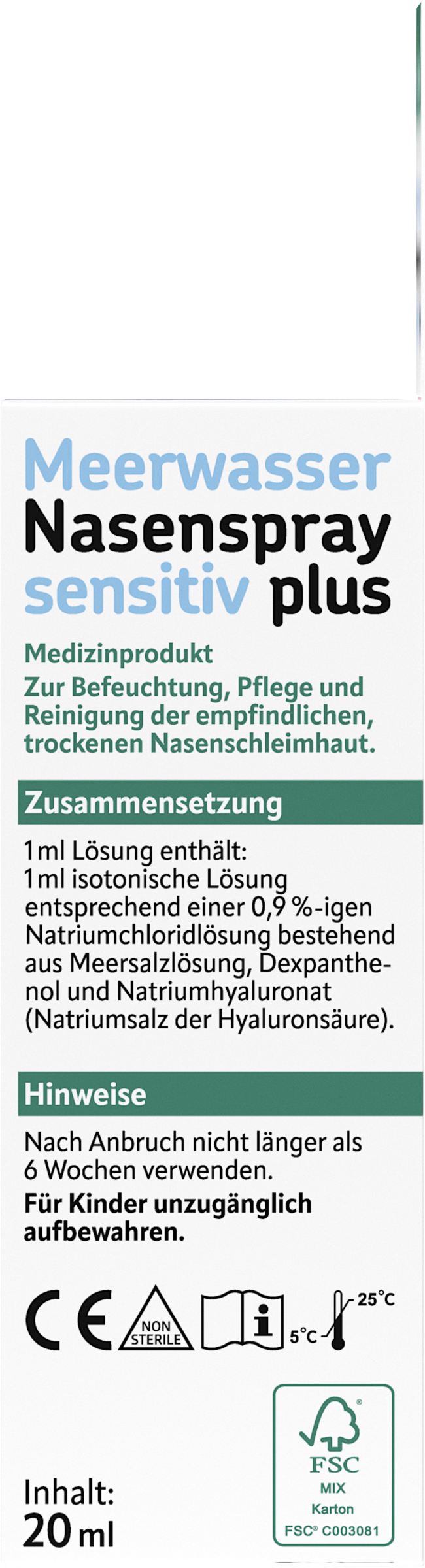 altapharma Meerwasser Nasenspray sensitiv PLUS mit seinem feinen Sprühnebel ist eine sanfte Hilfe bei trockener, empfindlicher, staub- und pollenbelasteter Nasenschleimhaut sowie als begleitende Maßnahme bei der Behandlung von Schnupfen. Die isotone Meersalzlösung befeuchtet und reinigt die Nasenschleimhaut. Dadurch wird die natürliche Reinigungsfunktion der Nase unterstützt und das freie Atmen erleichtert. Frei von Konservierungsstoffen und Alkohol.