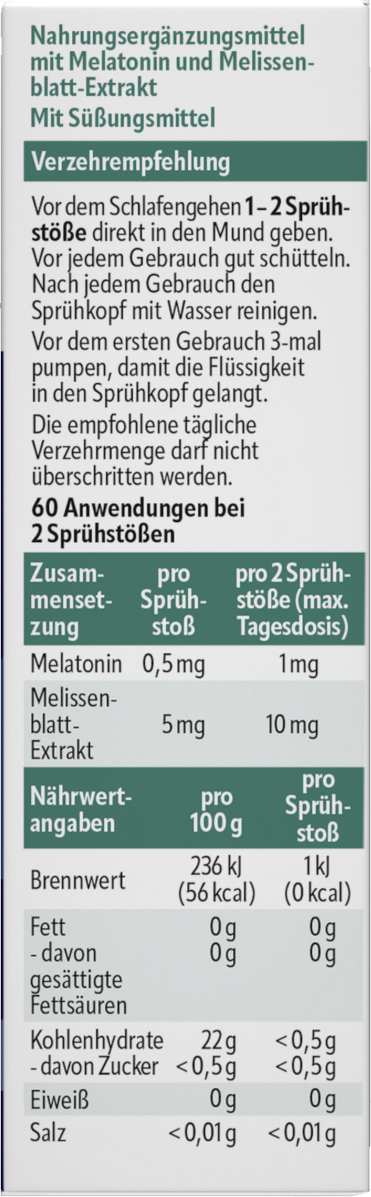 - 1mg Melatonin 2 Sprühstöße