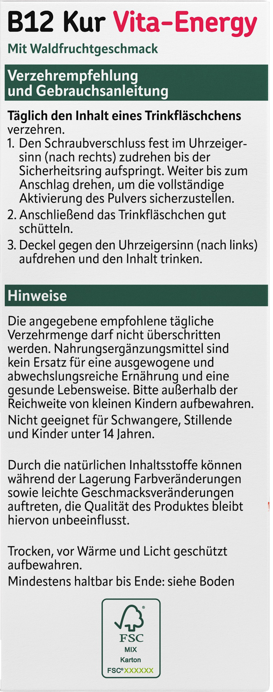 Die angegebene empfohlene tägliche Verzehrmenge darf nicht überschritten werden. Nahrungsergänzungsmittel sind kein Ersatz für eine ausgewogene und abwechslungsreiche Ernährung und eine gesunde Lebensweise. Bitte außerhalb der Reichweite von kleinen Kindern aufbewahren. Nicht geeignet für Schwangere, Stillende und Kinder unter 14 Jahren.
