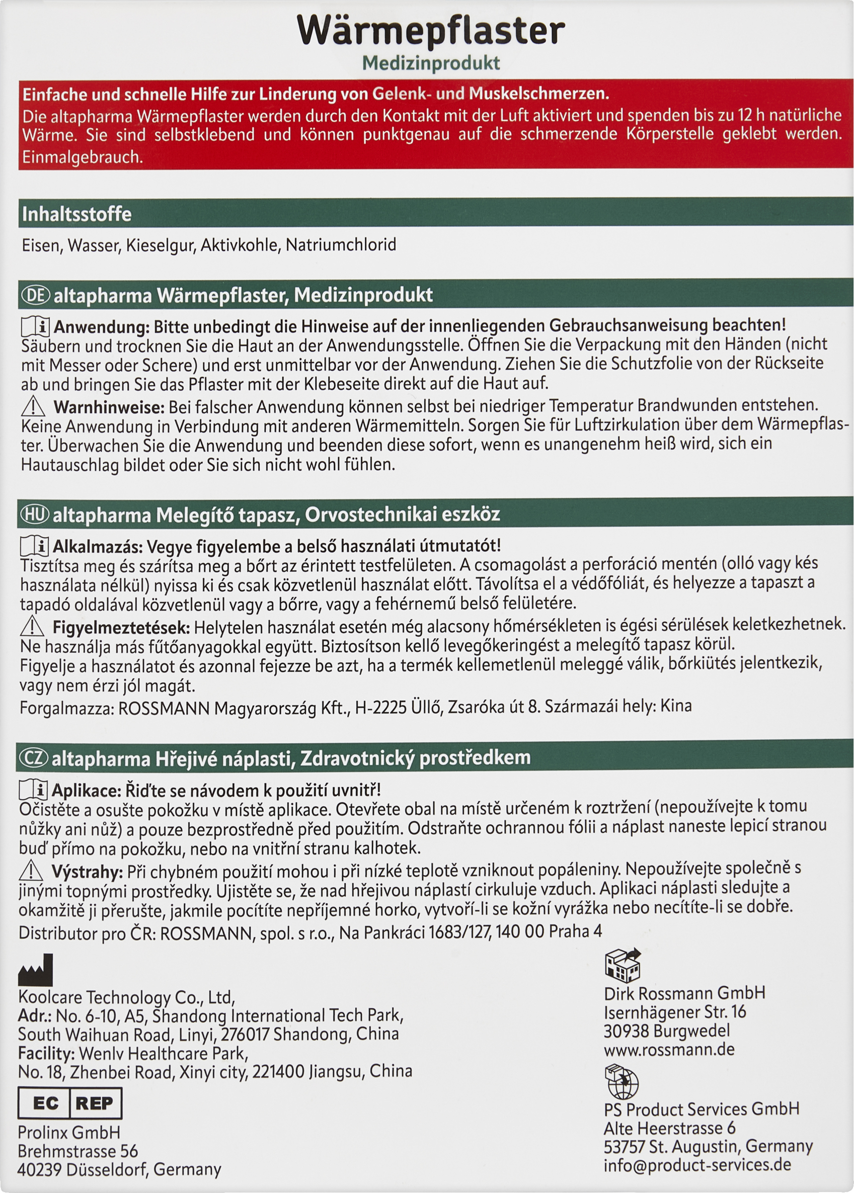 Einfache und schnelle Hilfe zur Linderung von Gelenk- und Muskelschmerzen.Die altapharma Wärmepflaster werden durch den Kontakt mit der Luft aktiviert und spenden bis zu 12 h natürliche Wärme. Sie sind selbstklebend und können punktgenau auf die schmerzende Körperstelle geklebt werden.