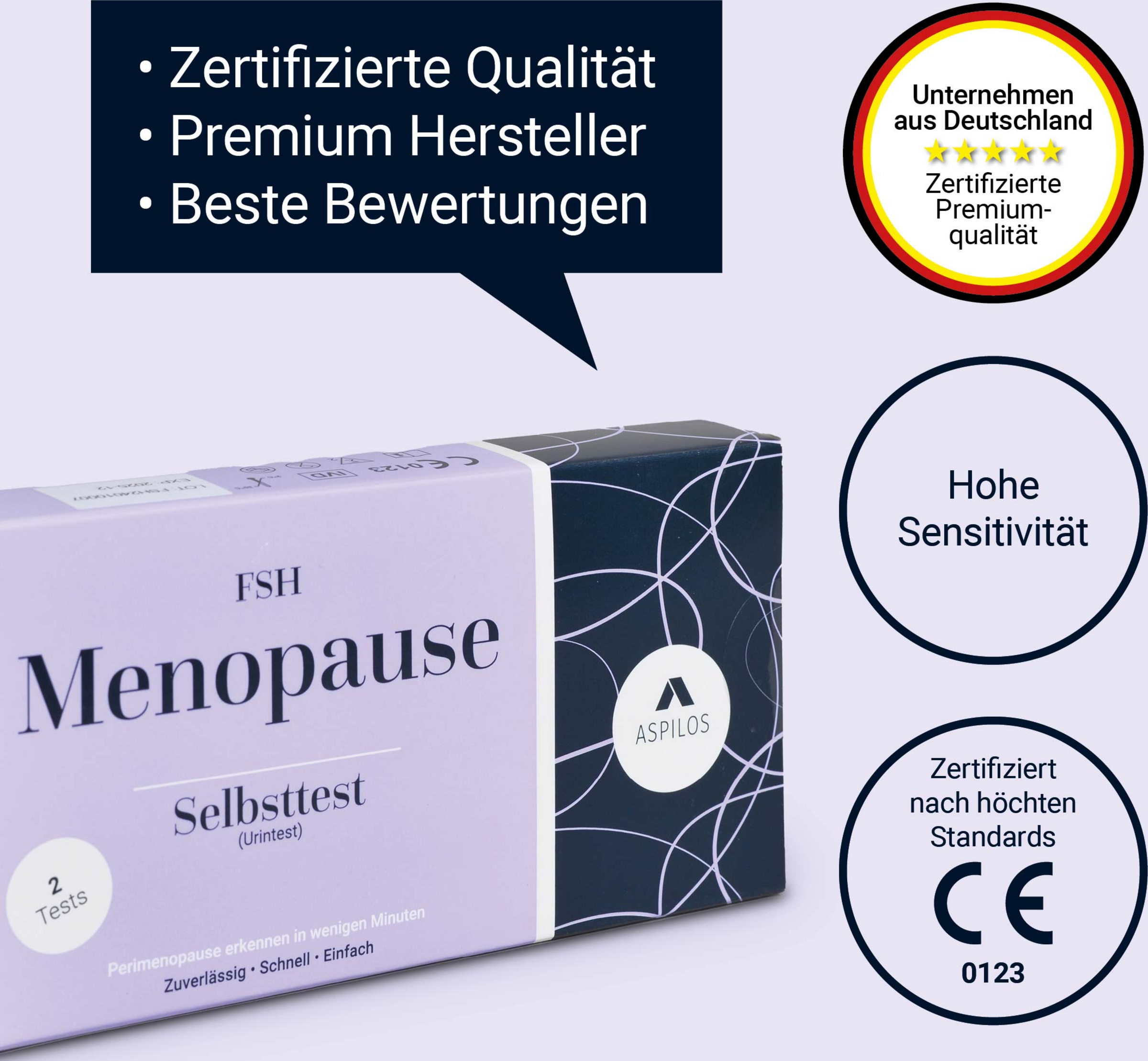 Der Schnelltest zur Bestimmung des follikelstimulierenden Hormons (FSH) im Urin wurde speziell für die Heimanwendung konzipiert. Dieses In-vitro-Diagnostikum erlaubt es Ihnen, zuverlässig und ohne medizinische Fachkenntnisse Anzeichen einer einsetzenden oder bestehenden Menopause zu identifizieren. Der Test ist benutzerfreundlich gestaltet, liefert schnelle Resultate und dient als erster Anhaltspunkt für Schwankungen im FSH-Niveau.