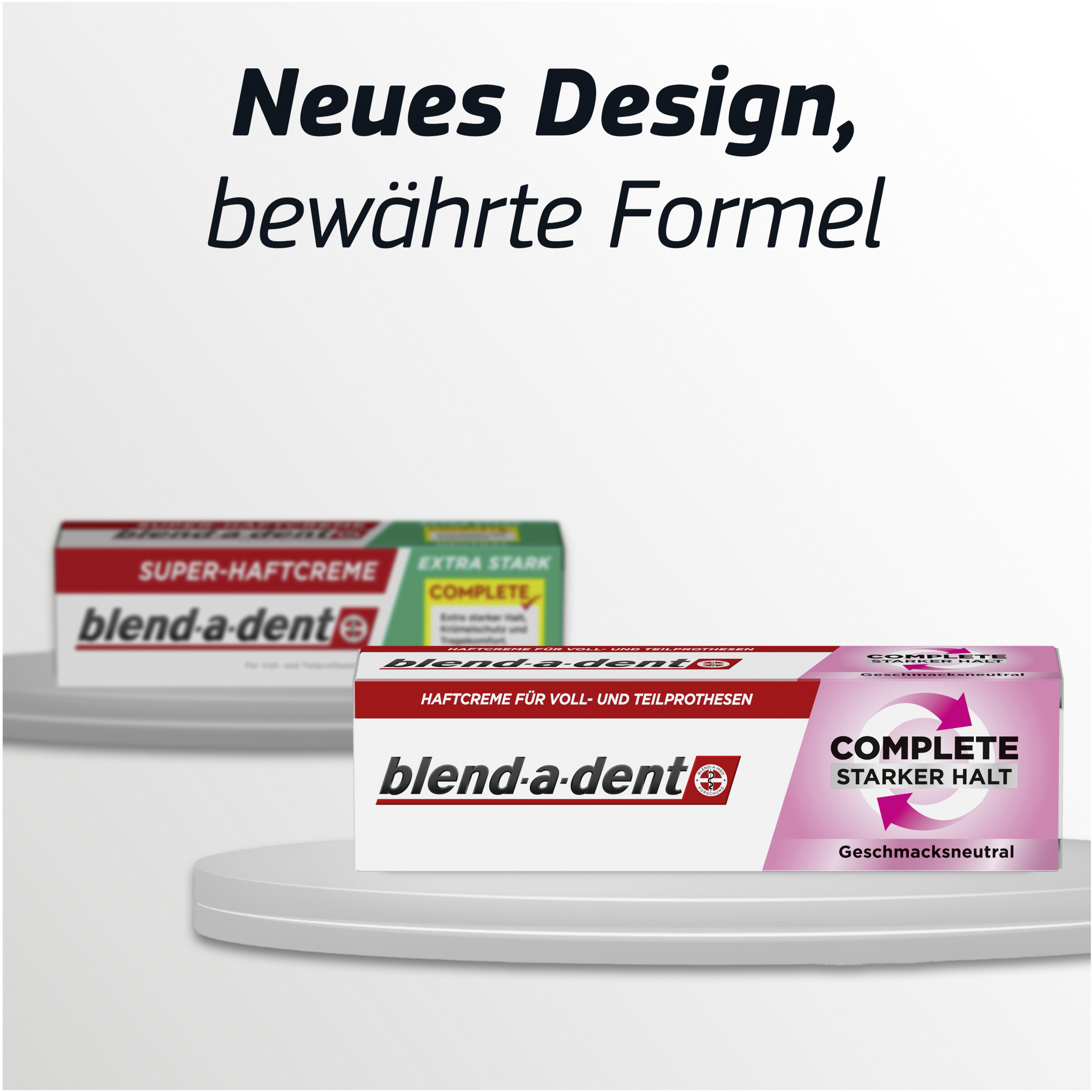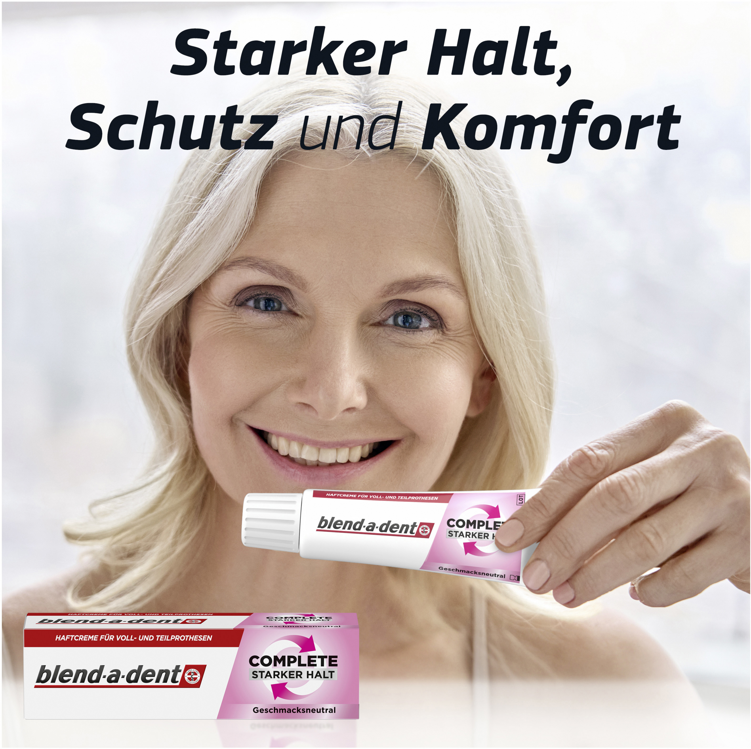 Blend-a-dent Complete Geschmacksneutral bietet den ganzen Tag über einen starken Halt und Tragekomfort. Diese Haftcreme ist für Voll- und Teilprothesen geeignet.