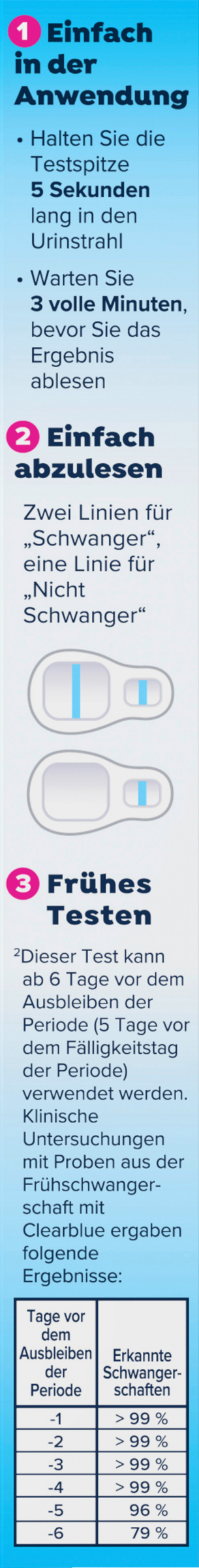 ¹im Vergleich zum Ausbleiben der Periode (5 Tage vor Fälligkeit der Periode).
