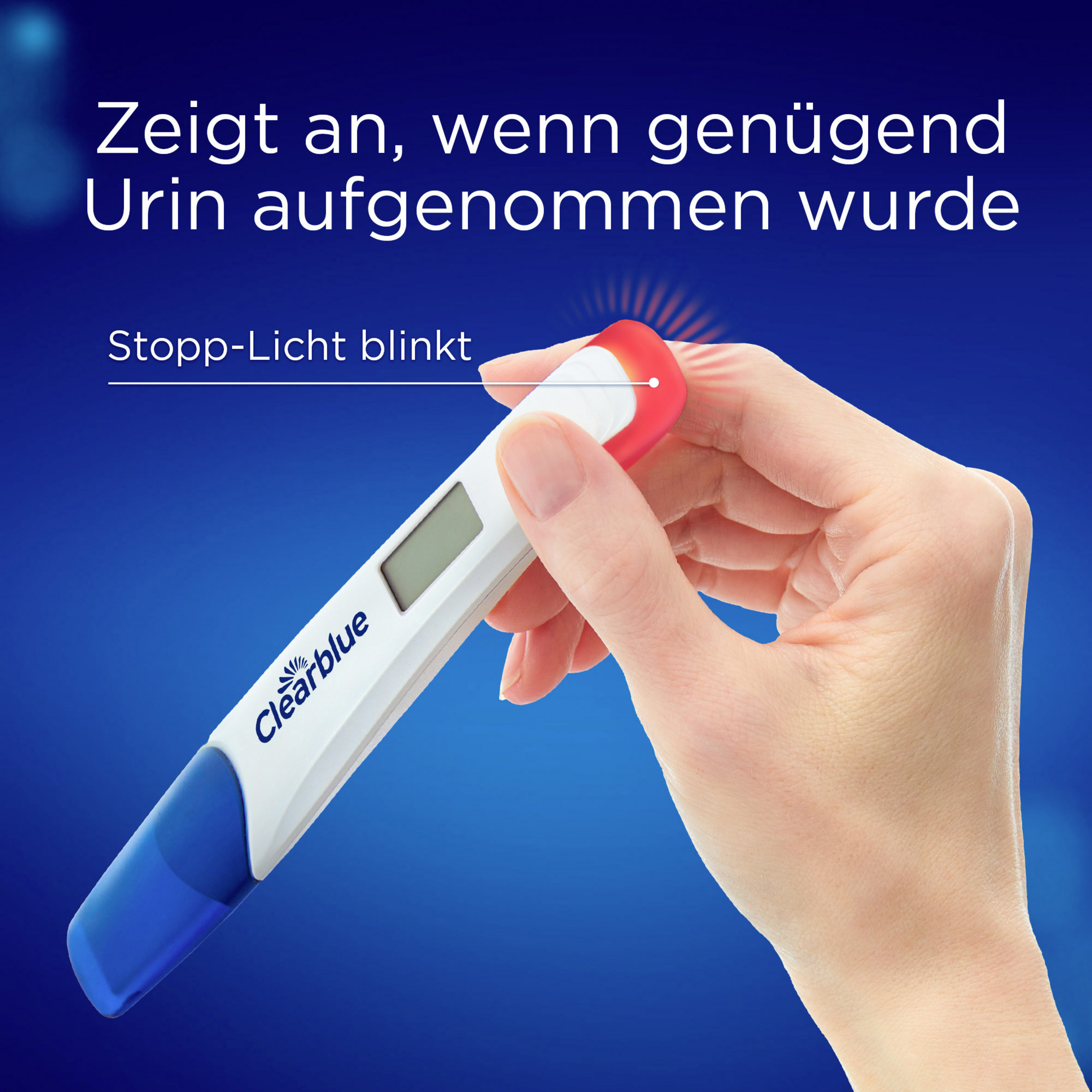 Der empfindliche digitale Schwangerschaftstest erkennt das Schwangerschaftshormon hCG mit einer Empfindlichkeit von 10 mIU/ml.