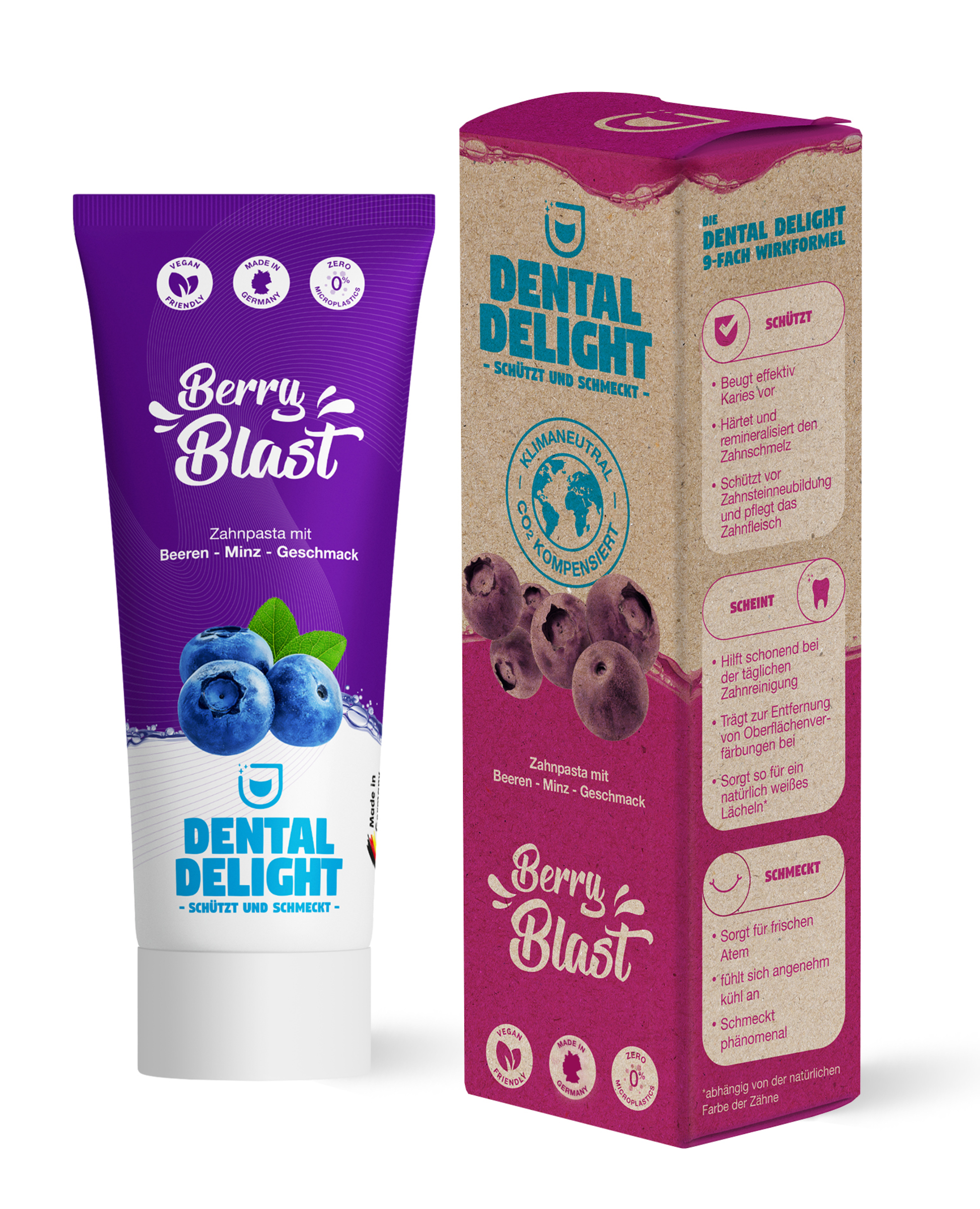 - Keine Lust mehr auf langweiliges Zähneputzen? Die Berry Blast sorgt definitiv für mehr Freude! Mit dem fruchtigen Blaubeere-Minze Geschmack ist die DENTAL DELIGHT die wahrscheinlich leckerste Zahnpasta der Welt.