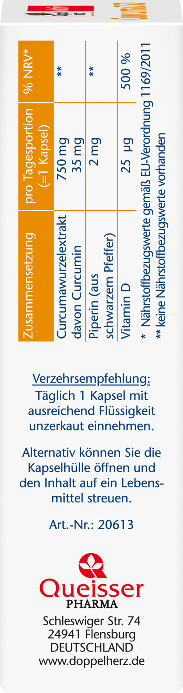 - 750 mg Curcumawurzelextrakt - davon 35 mg Curcumin