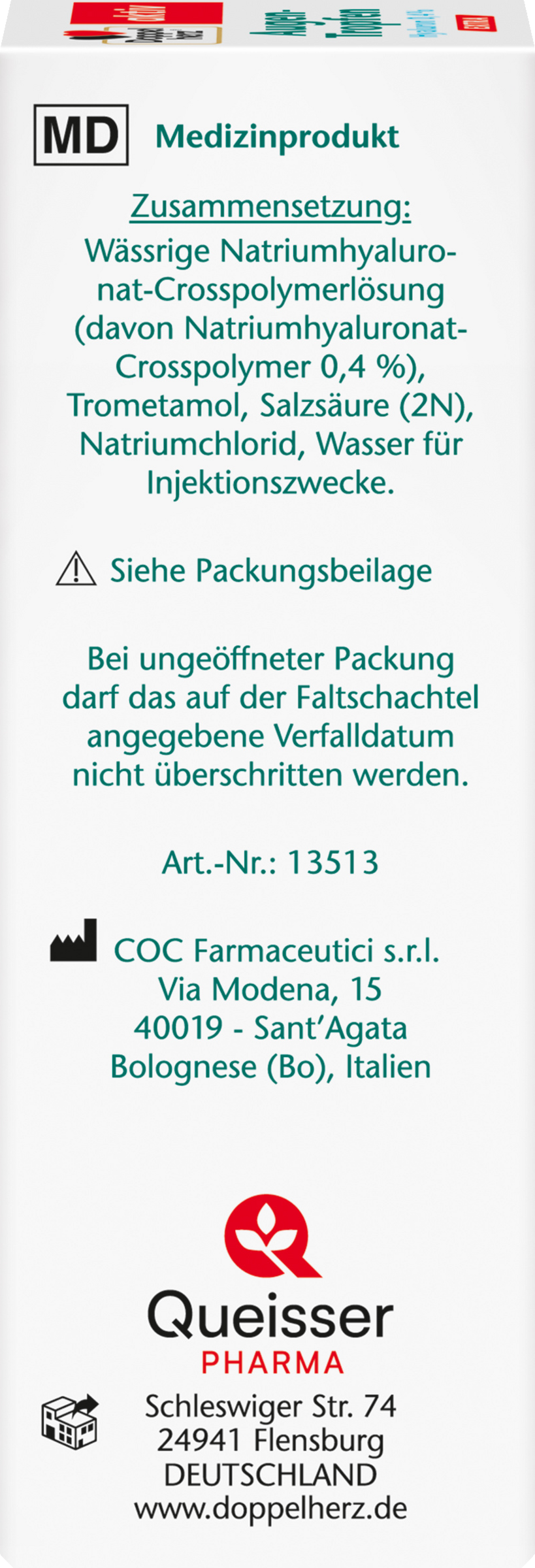 Wässrige Natriumhyaluronat-Crosspolymerlösung (davon 0,4 % Natriumhyaluronat-Crosspolymer), Trometamol, Salzsäure (2N), Natriumchlorid, Wasser für Injektionszwecke (WFI).