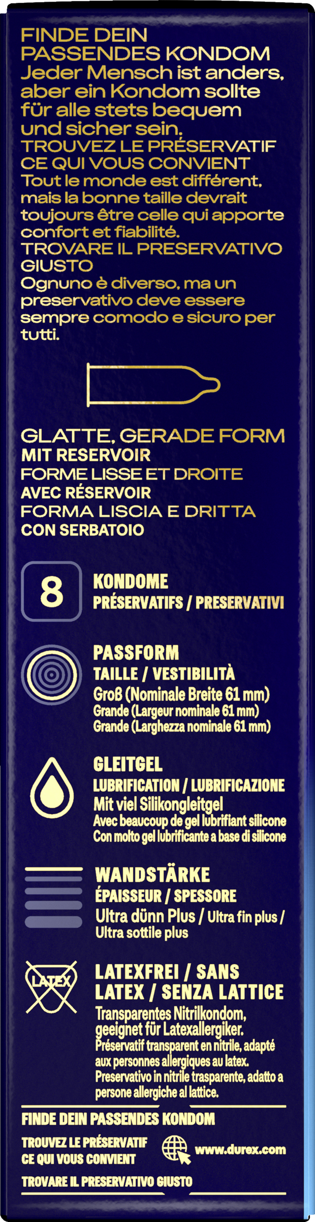 - QUALITÄT: 100 % aller Kondome sind elektronisch geprüft, zudem durchläuft jede Charge fünf Qualitätstests