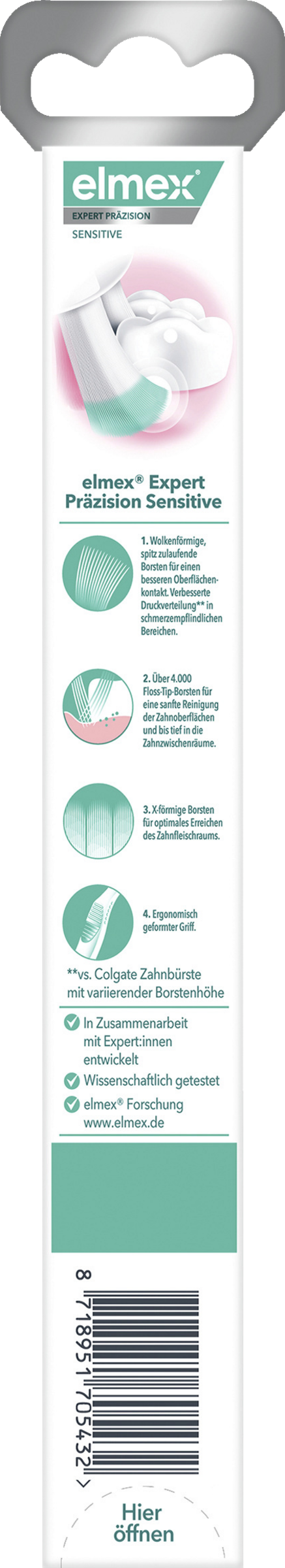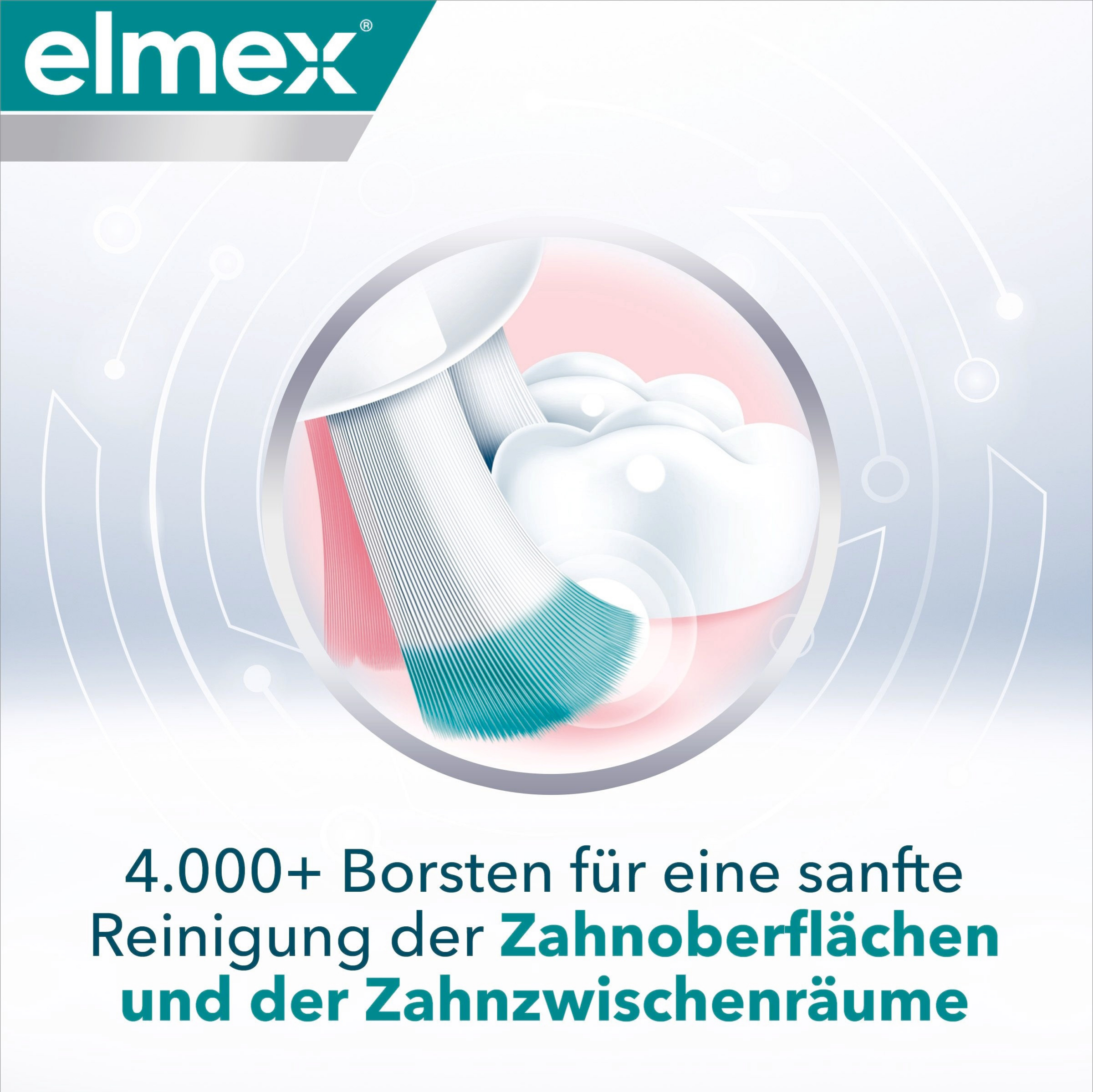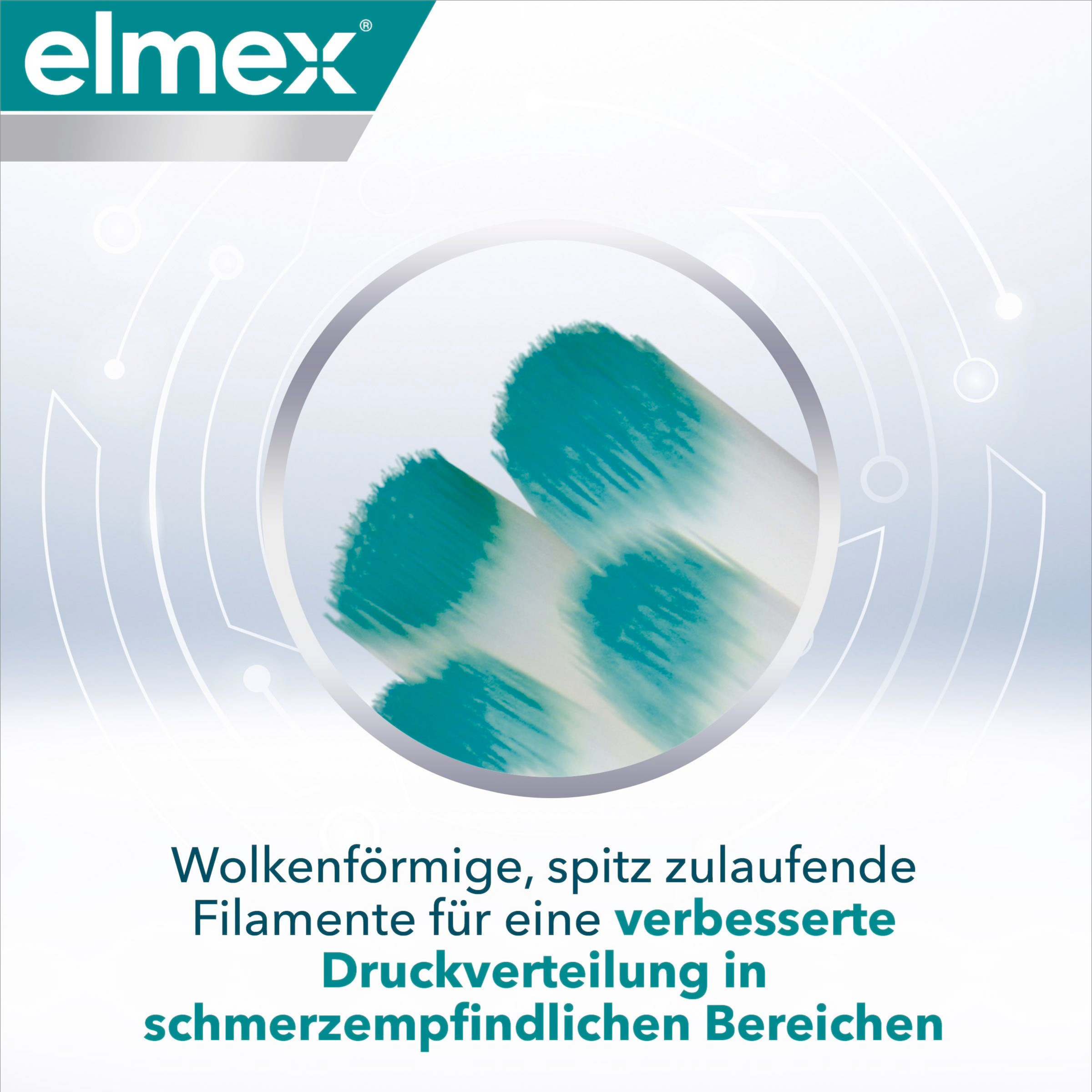 Es wird empfohlen, diese Zahnbürste in Kombination mit der elmex® SENSITIVE PROFESSIONAL Zahnpasta und Zahnspülung zu verwenden.