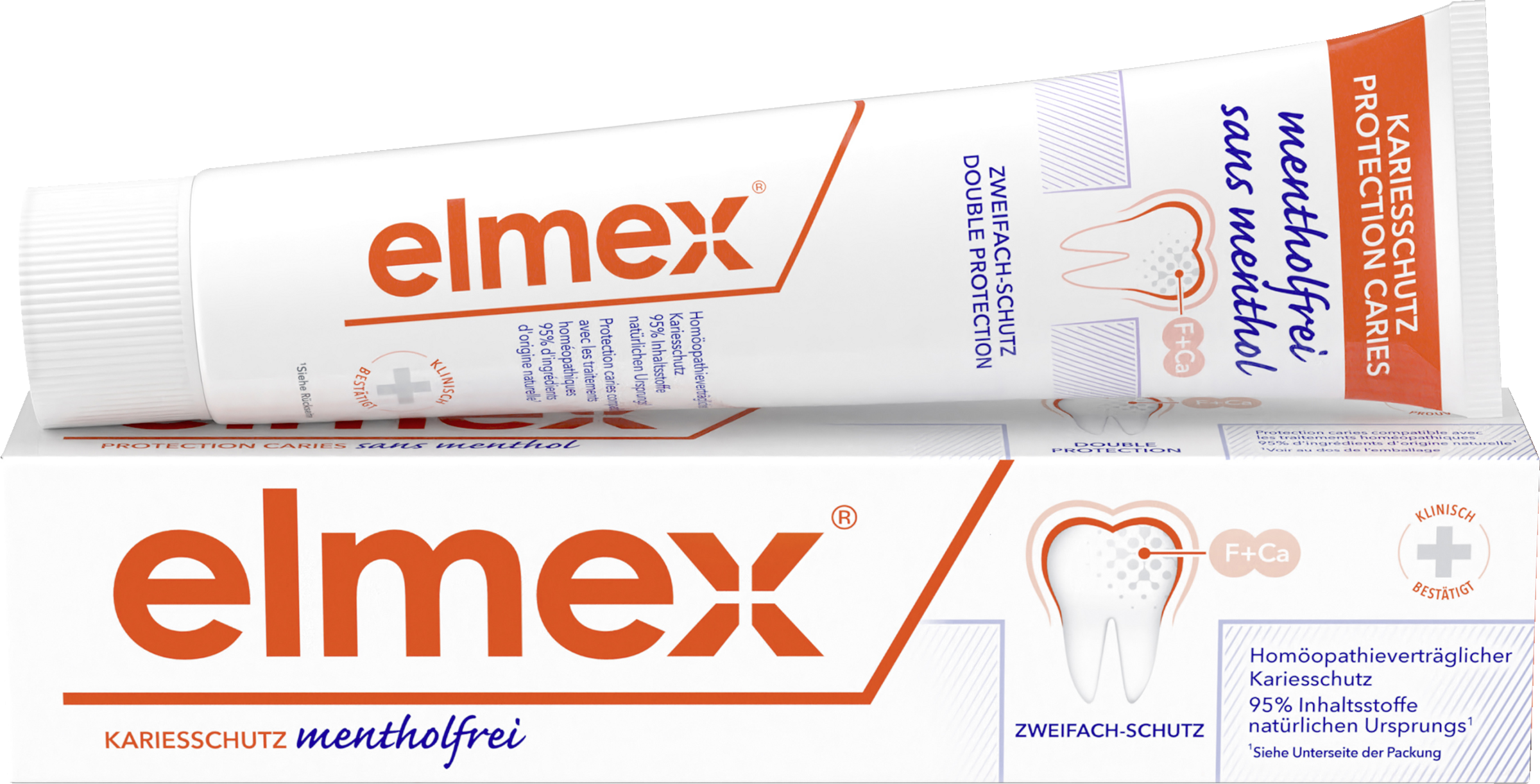 Statt der sonst üblichen Minznote von Zahnpasta bietet elmex® mentholfrei einen leicht fruchtig aromatisierten Geschmack. Sie entspricht den Anforderungen der klassischen Homöopathielehre und ist geeignet bei einer Menthol-Allergie oder Abneigung.