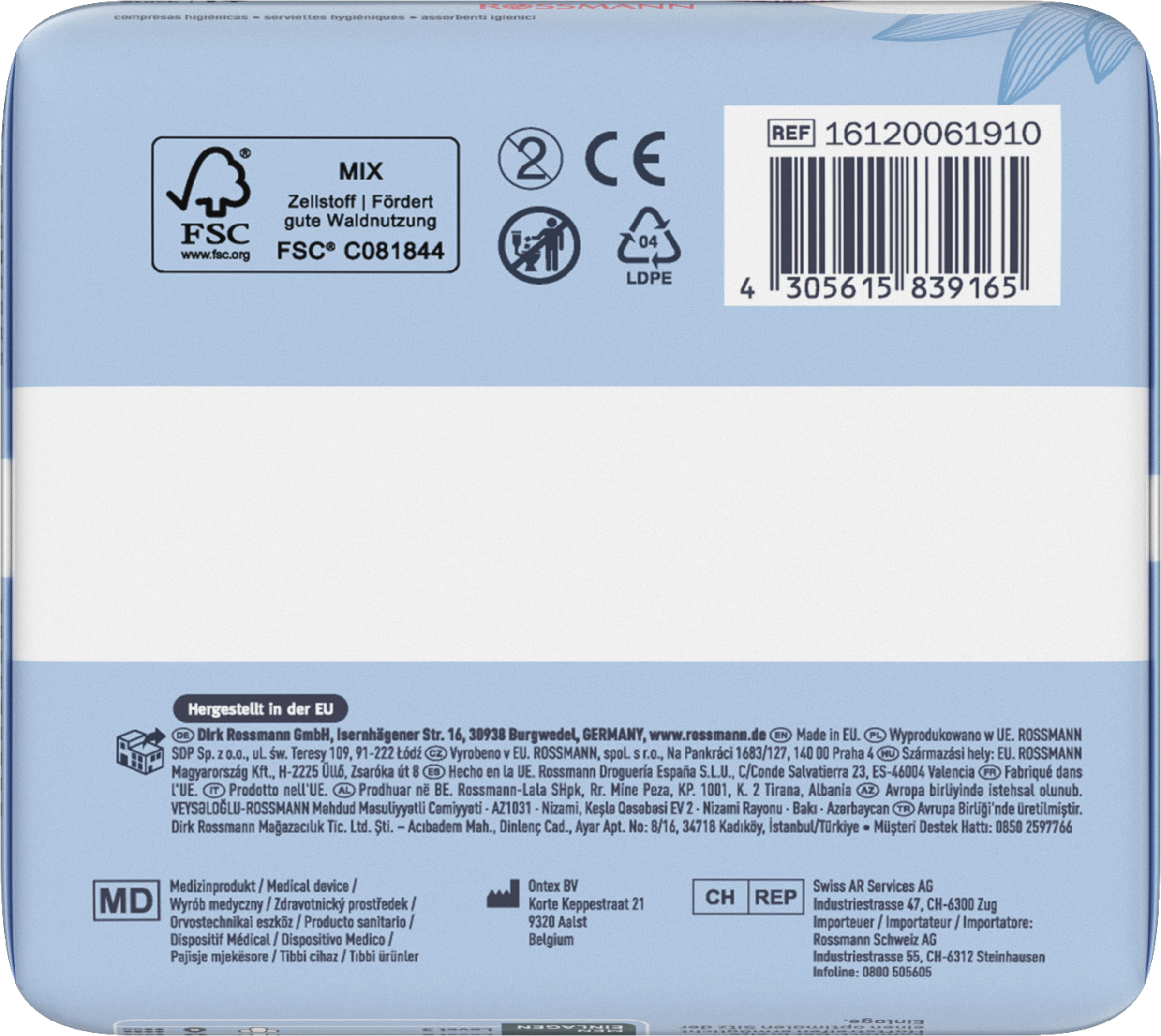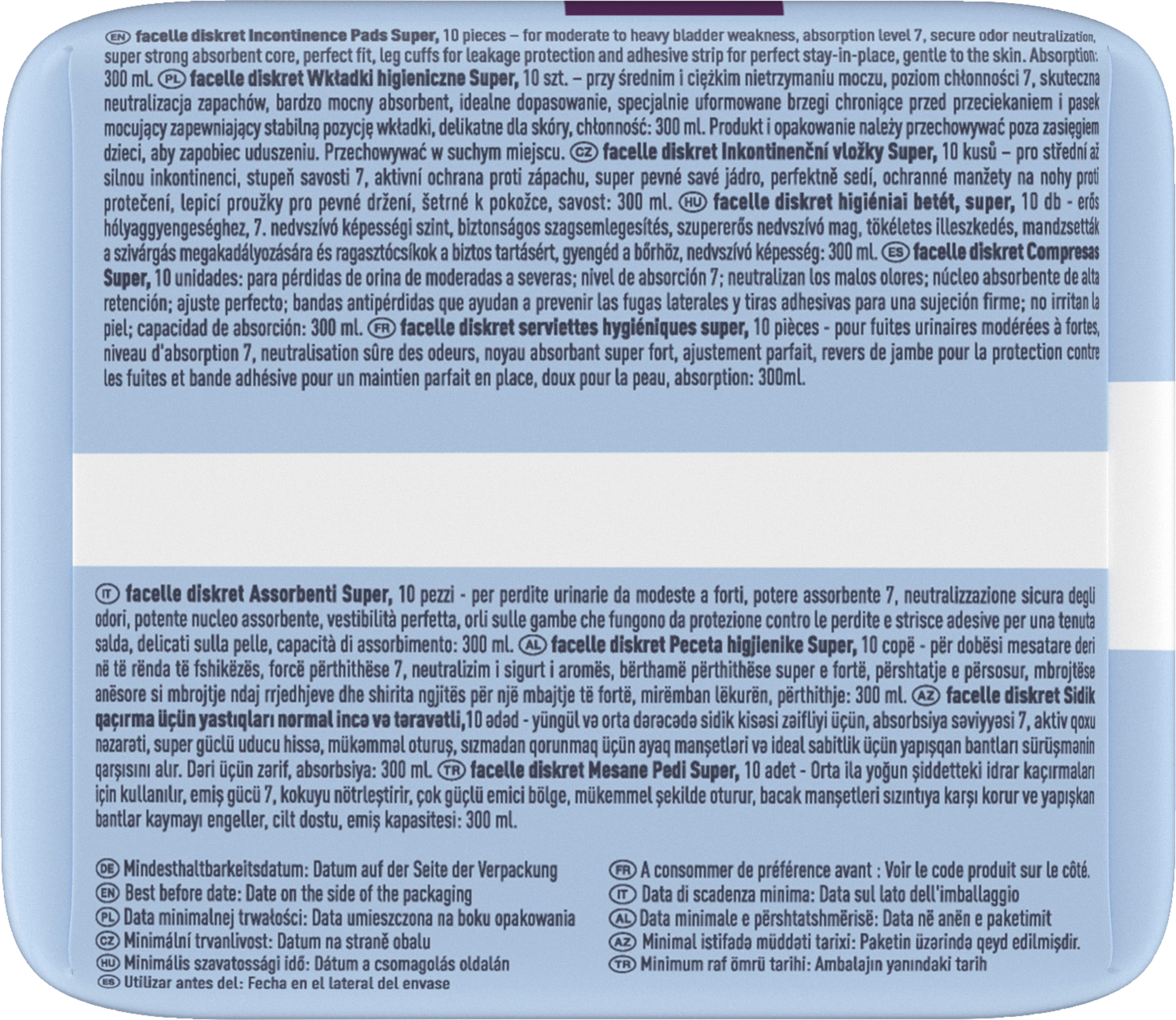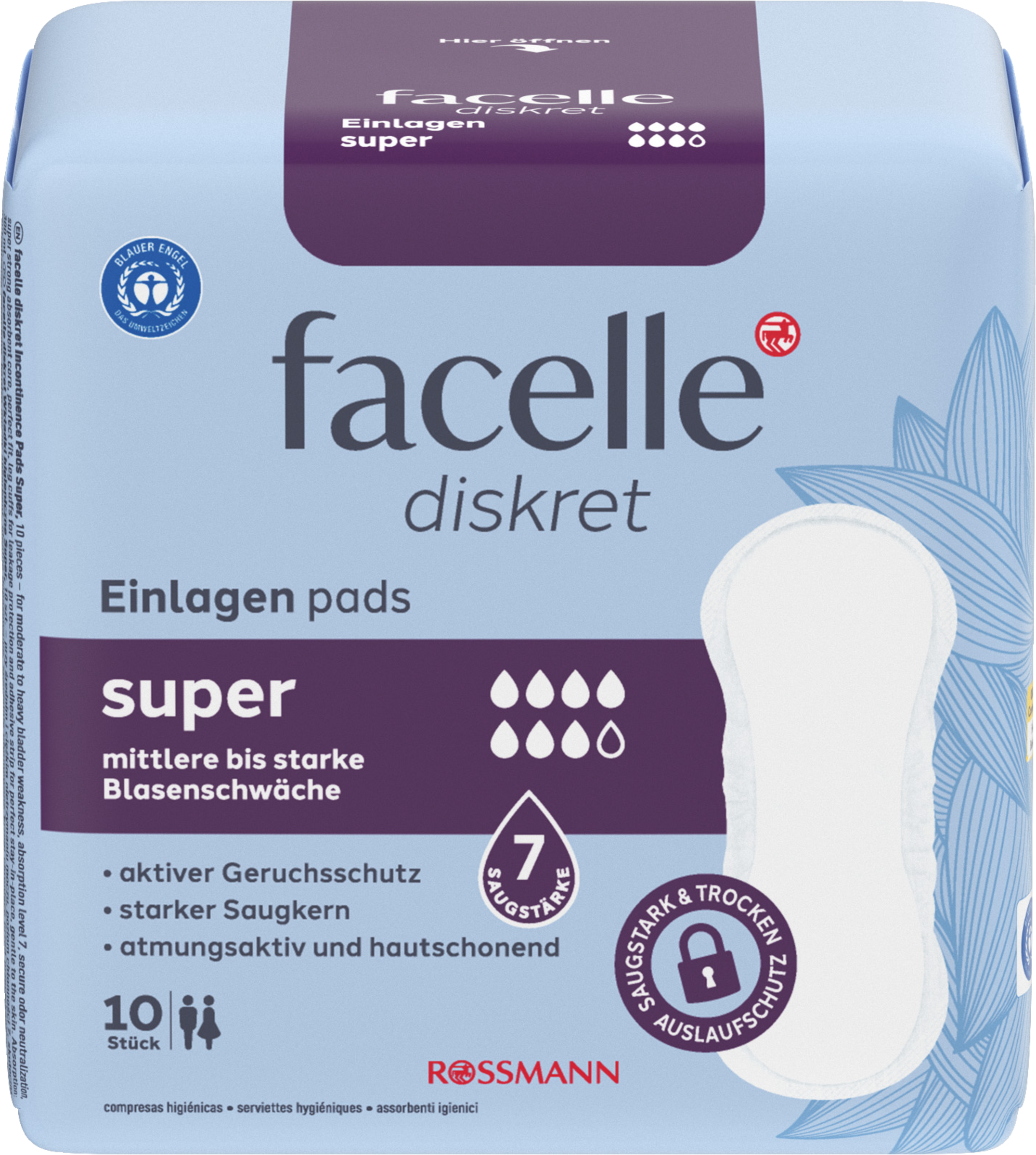 - Hohe Saugleistung: schnelle Flüssigkeitsaufnahme gewährleistet ein langanhaltendes Trockengefühl.