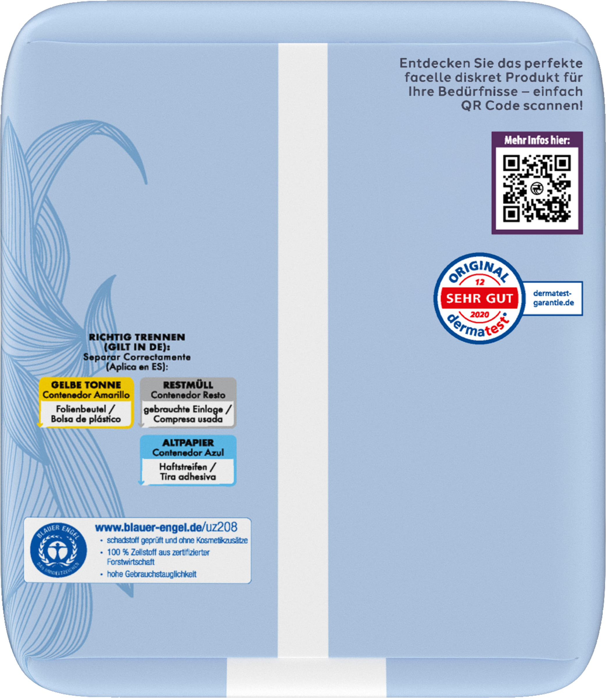 - Optimaler Tragekomfort und Sitz: die besonders weiche Oberfläche und die körpergerechte Form gewährleisten einen bestmöglichen Tragekomfort. Der breite Haftstreifen ermöglicht einen optimalen Sitz der Einlage.