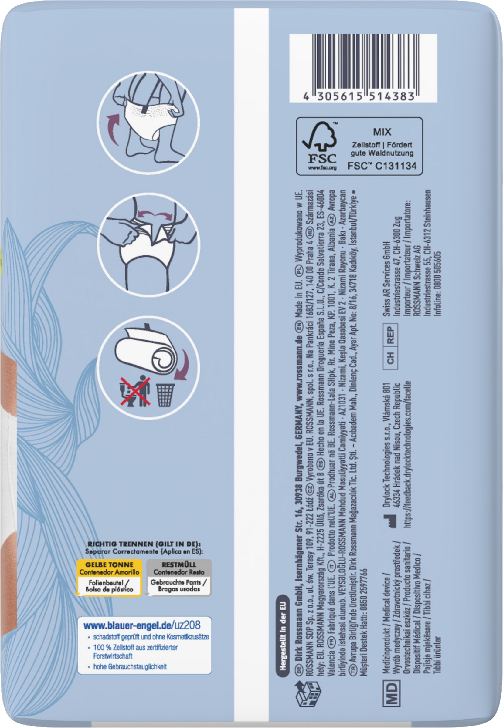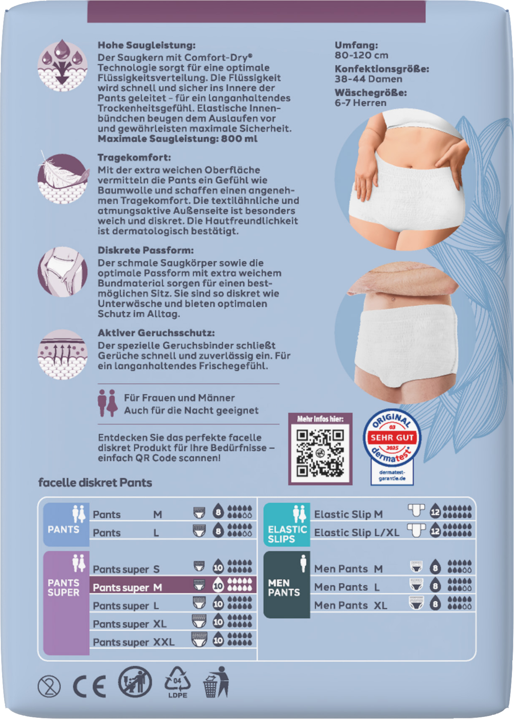 Gebrauchte Pants nicht in die Toilette werfen, sondern mit dem Hausmüll entsorgen. Nur zum einmaligen Gebrauch.