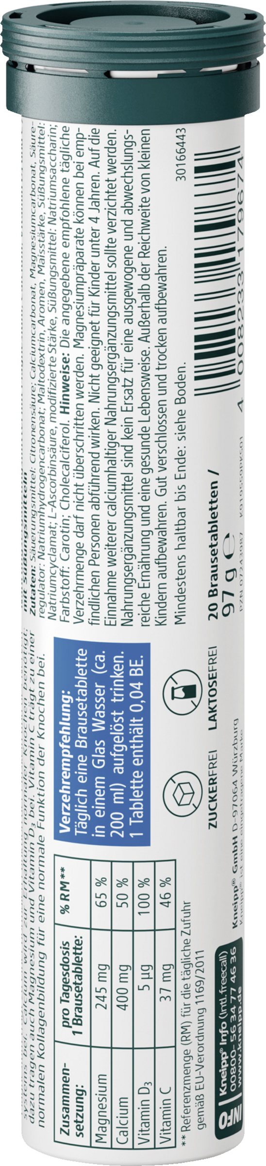 Für Nerven, Muskeln und Knochen Magnesium trägt zu einer normalen Funktion der Muskeln und des Nervensystems bei. Calcium wird zur Erhaltung normaler Knochen benötigt; dazu tragen auch Magnesium und Vitamin D3 bei. Vitamin C trägt zu einer normalen Kollagenbildung für eine normale Funktion der Knochen bei.