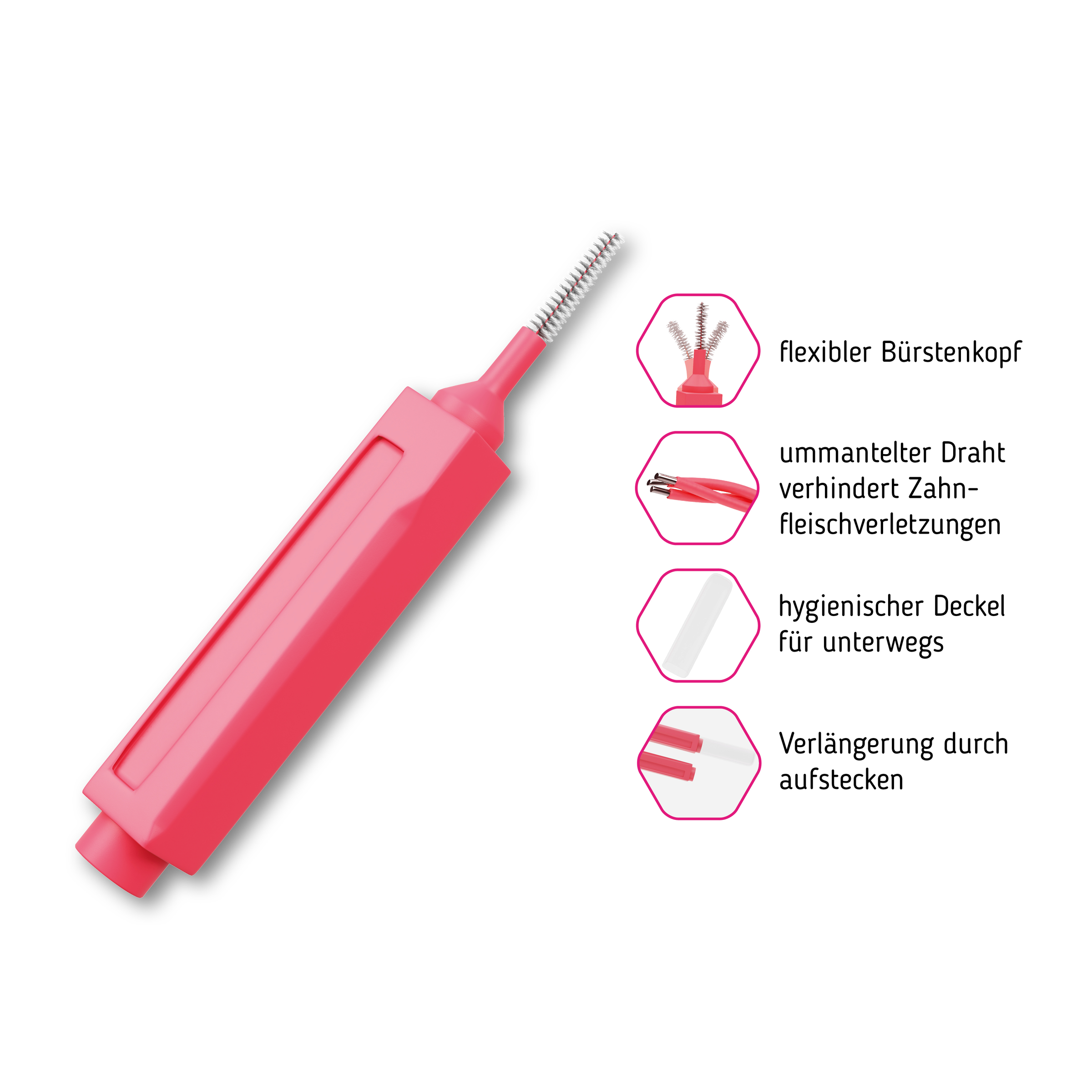 Zur gründlichen Reinigung der zahnzwischenräume die Bürste vorsichtig hin und her bewegen. Leicht biegen, nicht knicken, nicht mit Gewalt anwenden. Nach Benutzun gabspülen. Bürste täglich verwenden und auswechseln wenn abgenutzt.