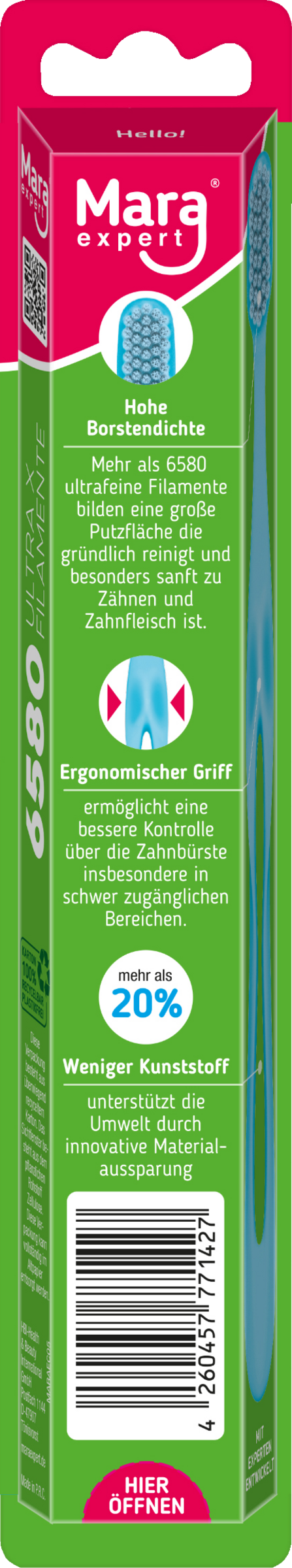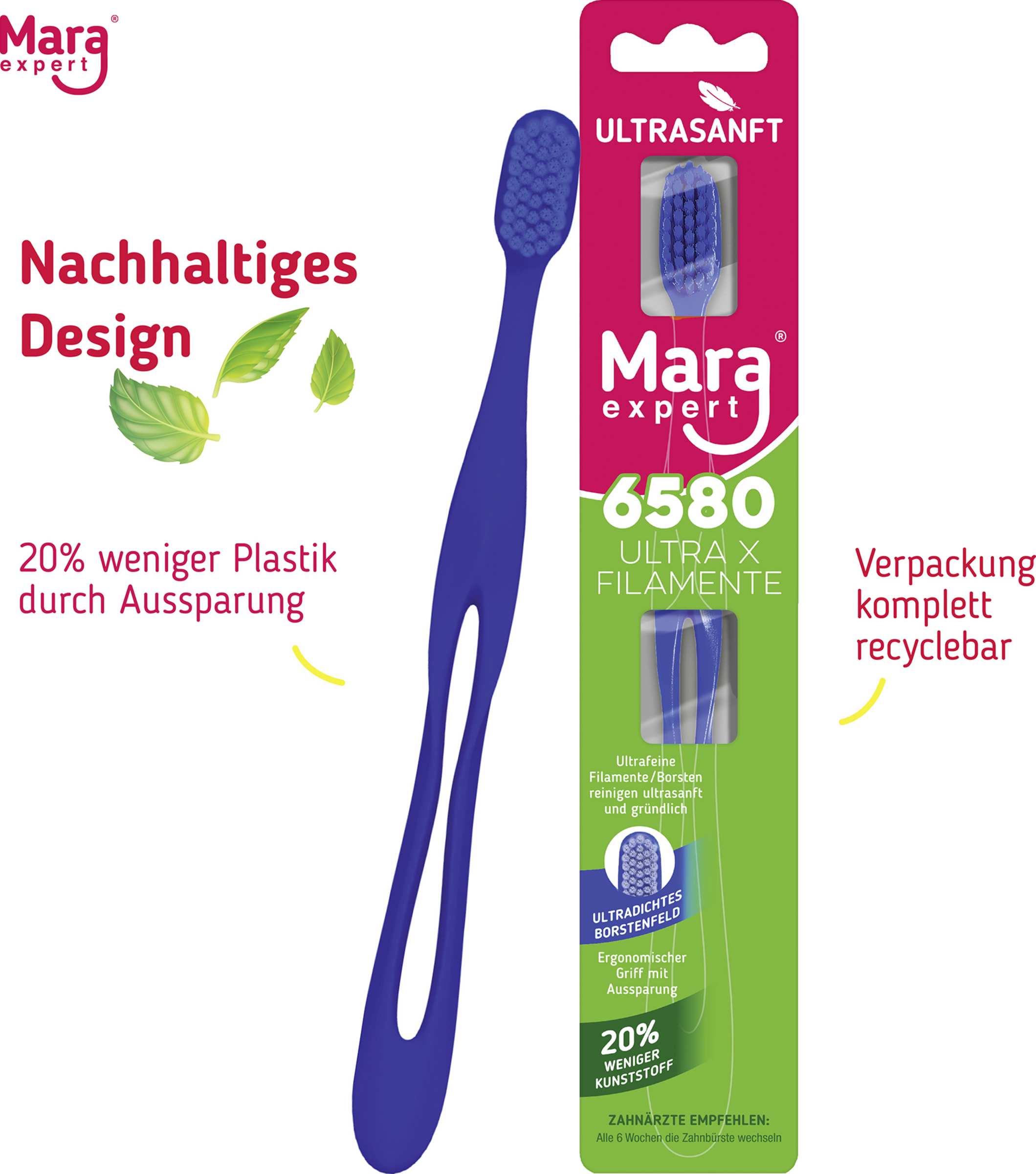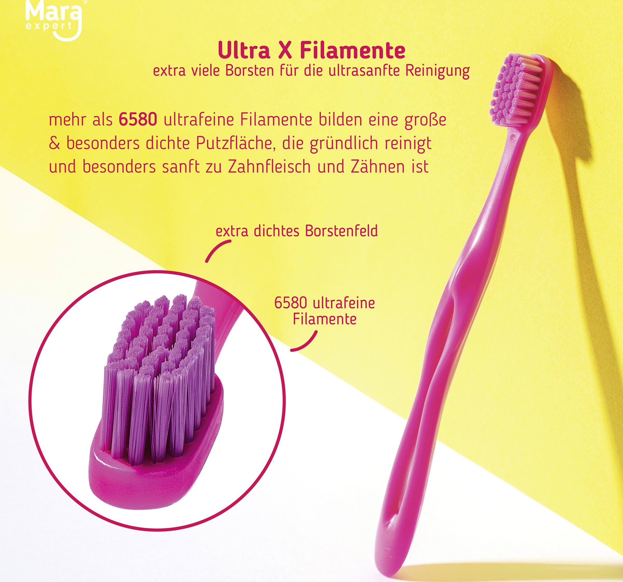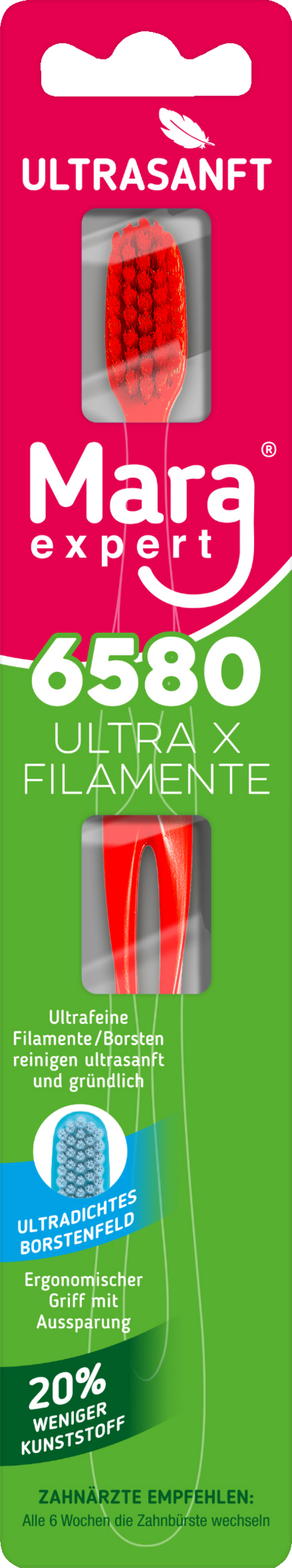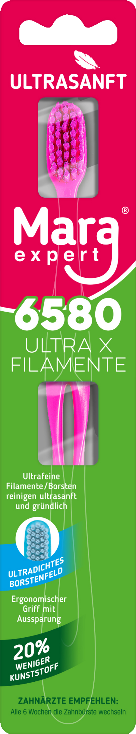 - ca. 6580 ultrafeine Filamente bilden eine große Putzfläche die gründlich reinigt und besonders sanft zu Zähnen und Zahnfleisch ist