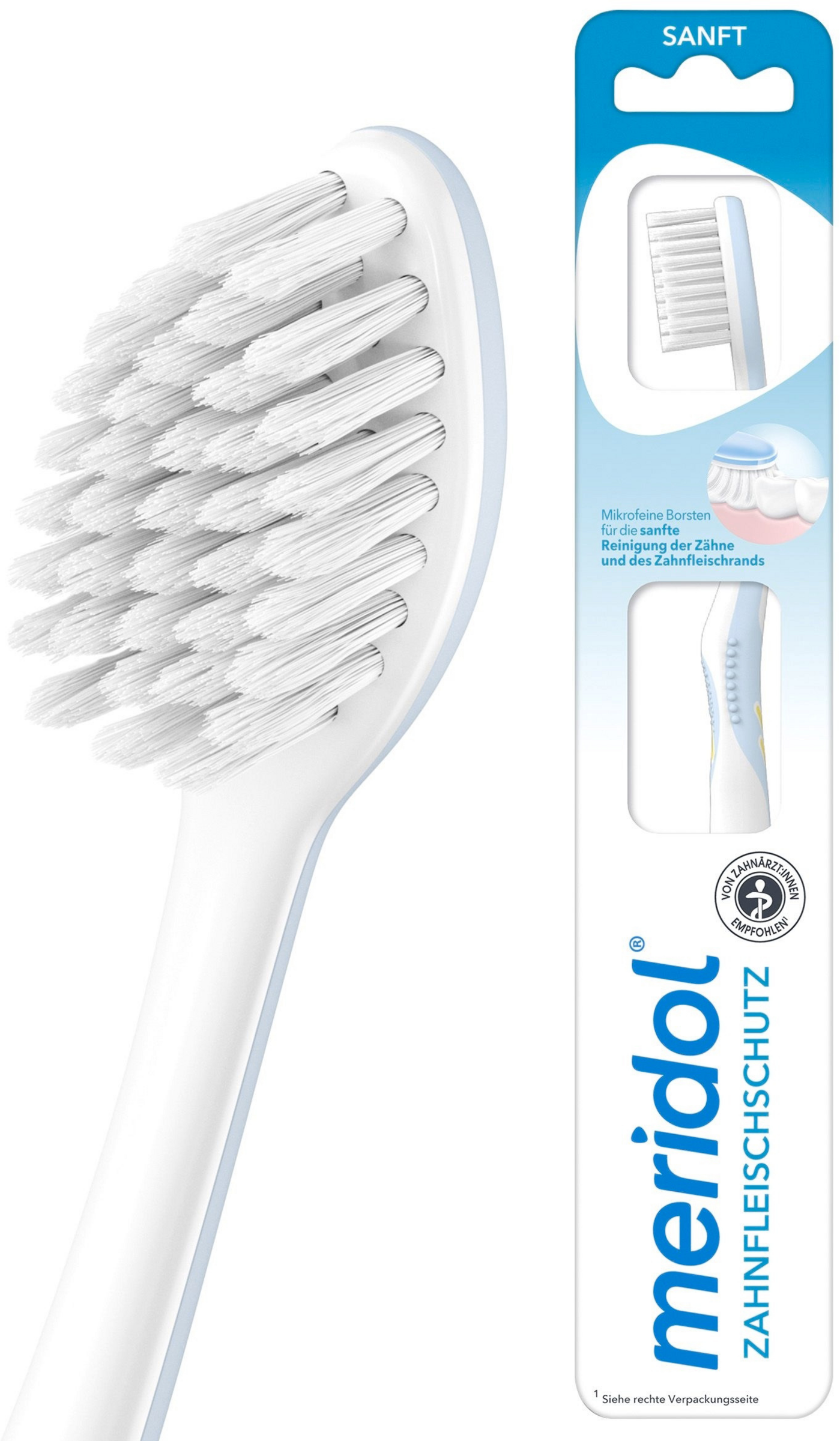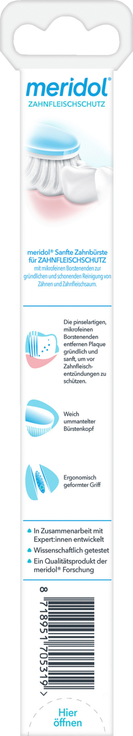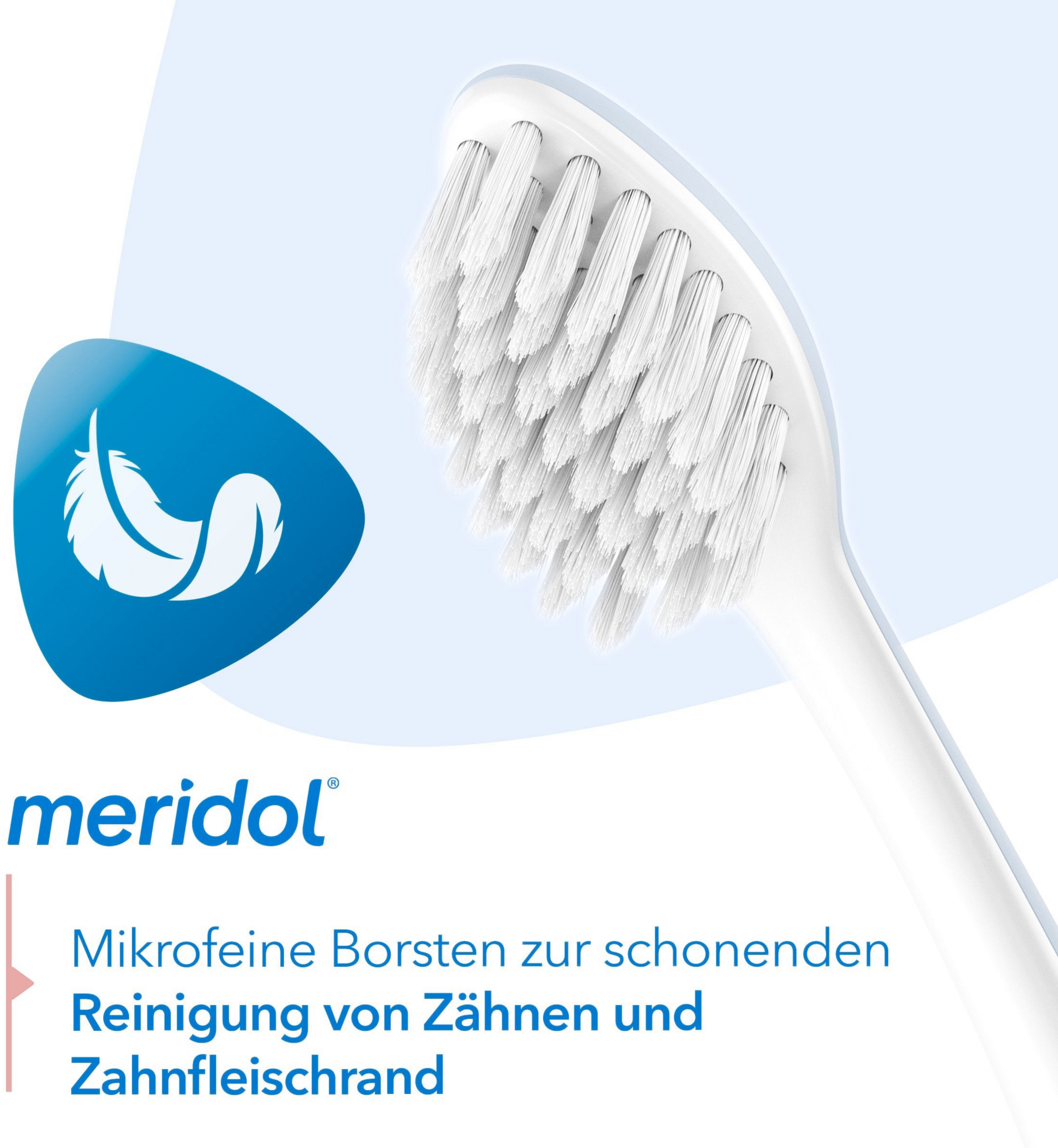 Das besondere Plus: Durch ihren extra-kleinen Bürstenkopf erreichen Sie mit der meridol Zahnfleisch sanft Zahnbürste alle Zahnflächen optimal.