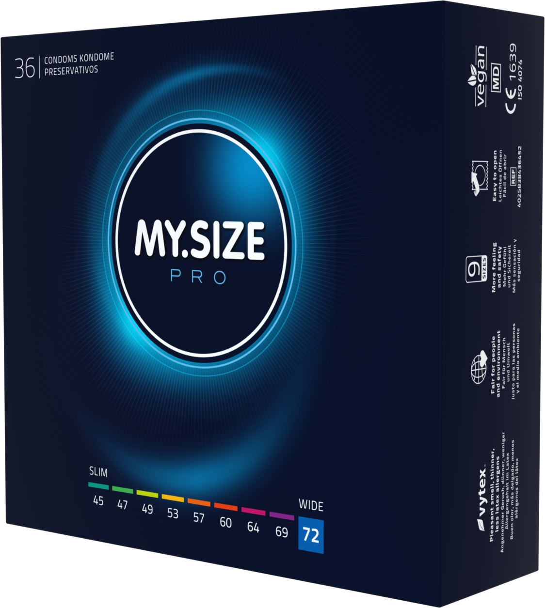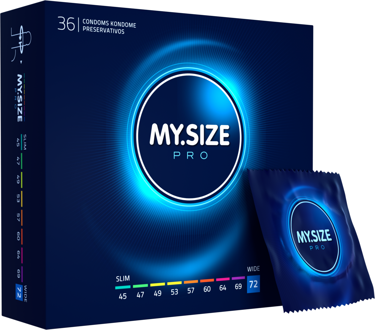 MY.SIZE PRO Kondome 72 mm, glatt, zylindrisch, transparent, mit Resrvoir, mit Gleitmittel.