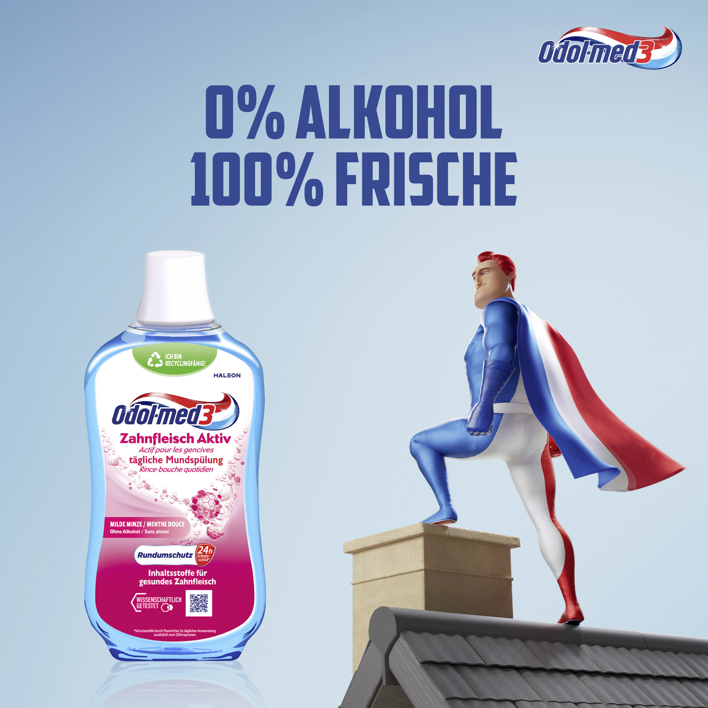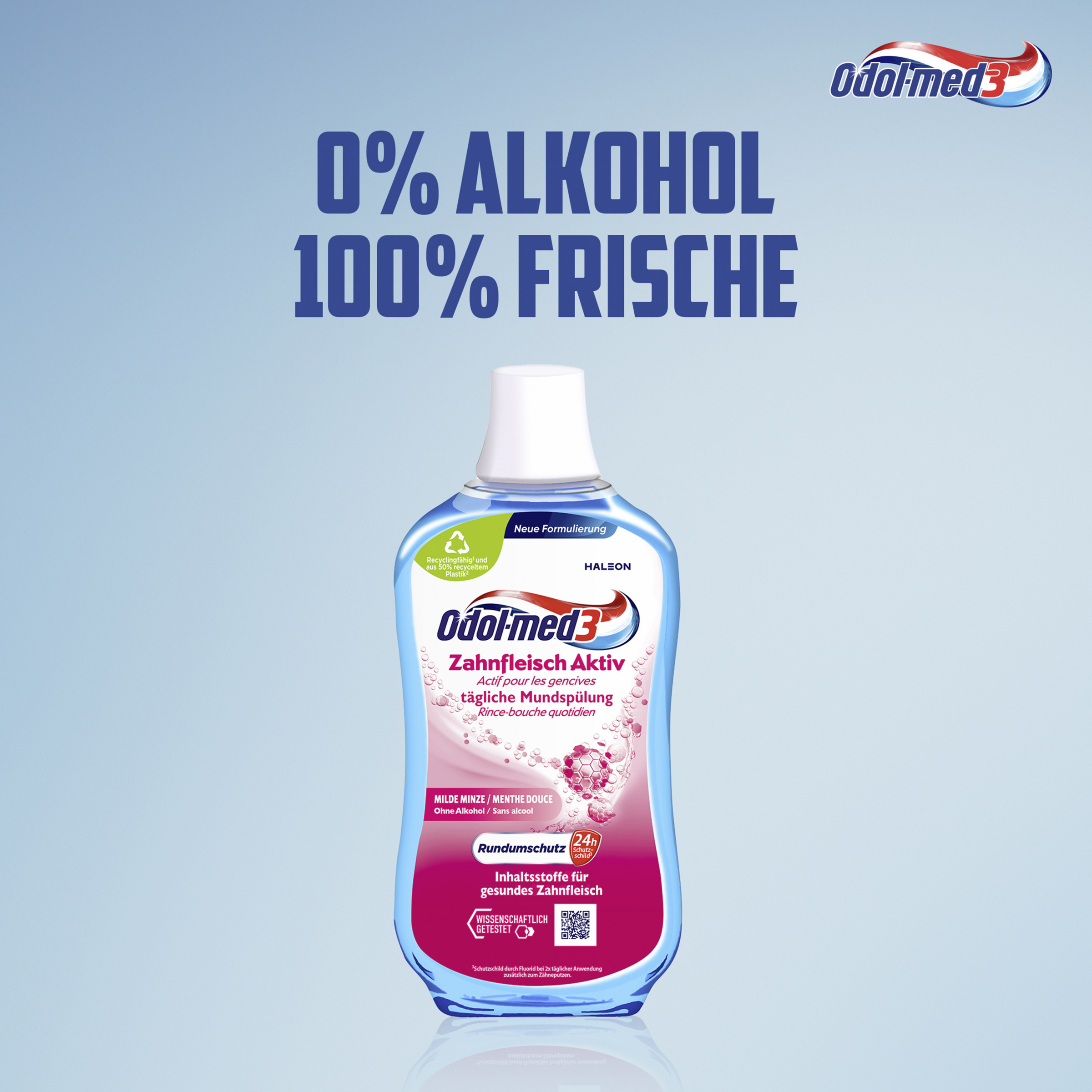 Die fluoridhaltige Multi-Aktiv-Formel der Zahnfleisch Aktiv Mundspülung mit Minz-Aroma enthält einen Inhaltsstoff, der Plaque-Bakterien bekämpft*, die Zahnfleischprobleme verursachen könnten. Die alkoholfreie Formel mit antibakterieller Wirkung sorgt außerdem für frischen Atem und wirkt auch dort, wo die Zahnbürste nicht hinkommt.