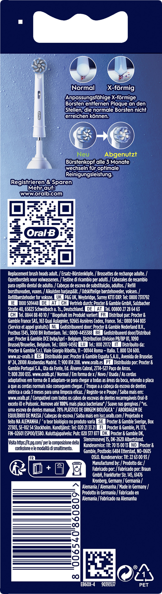 - original Bürstenköpfe von Oral-B mit innovativen X-förmigen Borsten