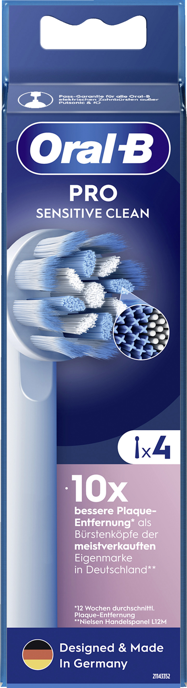 Der Sensitive Clean Bürstenkopf verfügt über ultra-weiche Borsten, die besonders sanft zum Zahnfleisch sind. Die Original-Bürstenköpfe von Oral-B wurden mit neuen X-förmigen Borsten entwickelt, die nun auch die Stellen reinigen, die normale Borsten nicht erreichen können. Zahnärzte empfehlen die Aufsteckbürste alle 3 Monate zu wechseln - für 100% Putzkraft.