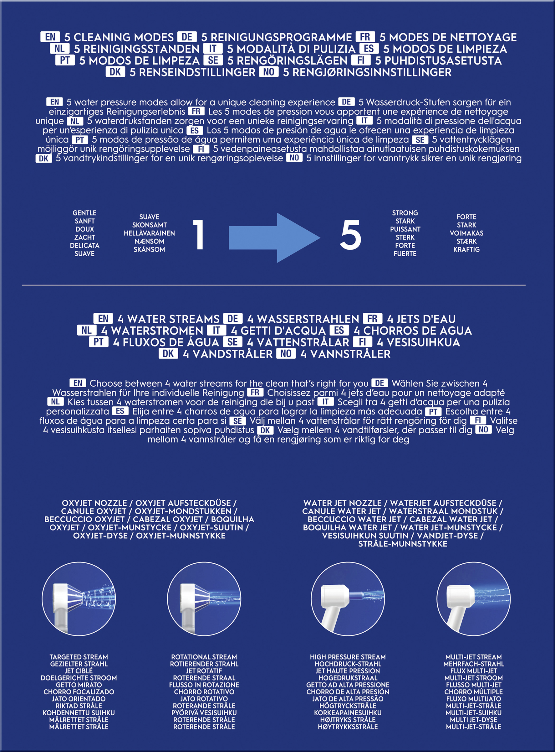 - Lieferumfang: 1 Munddusche, 1 Oxyjet-Düse, 1 Waterjet-Düse