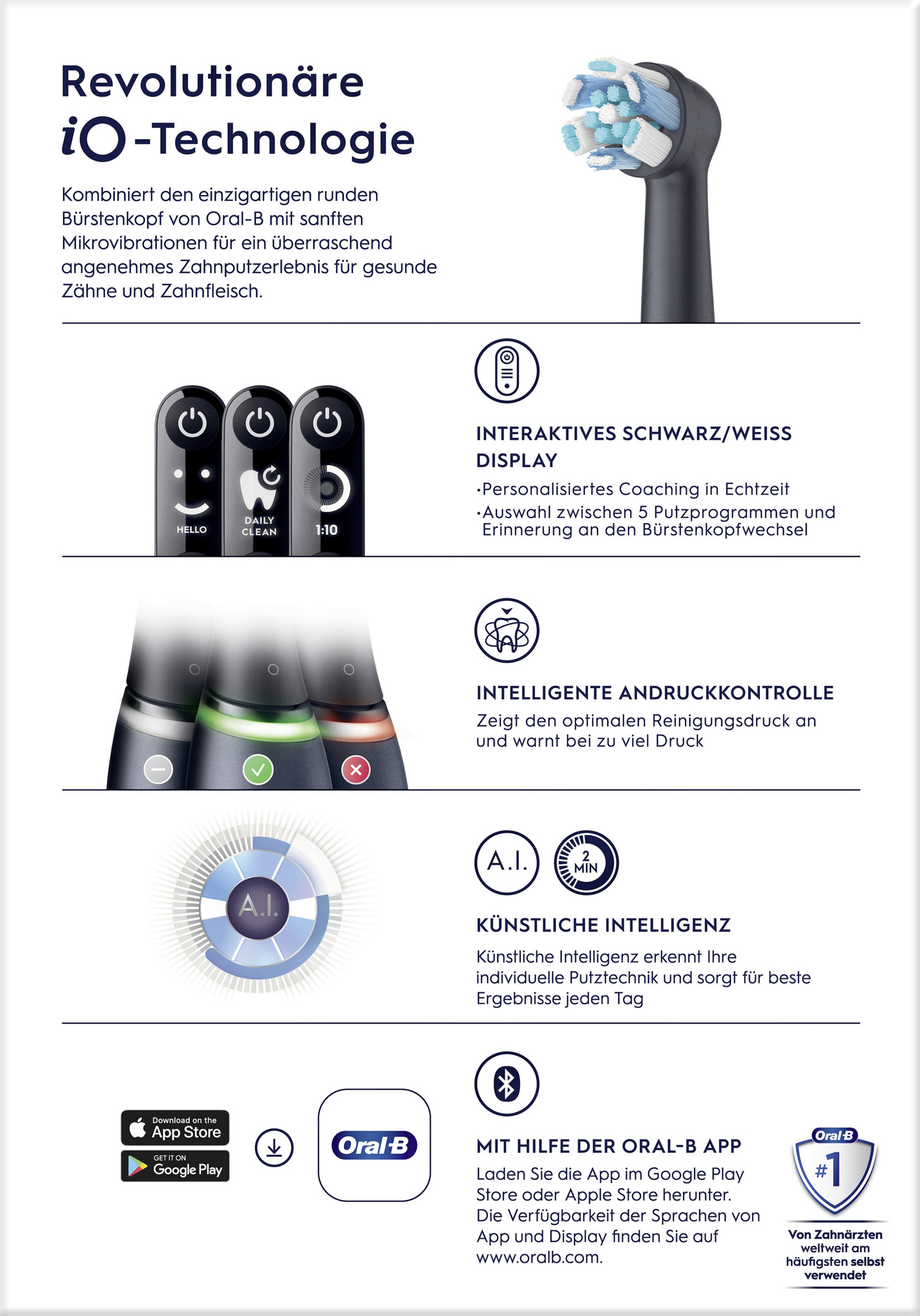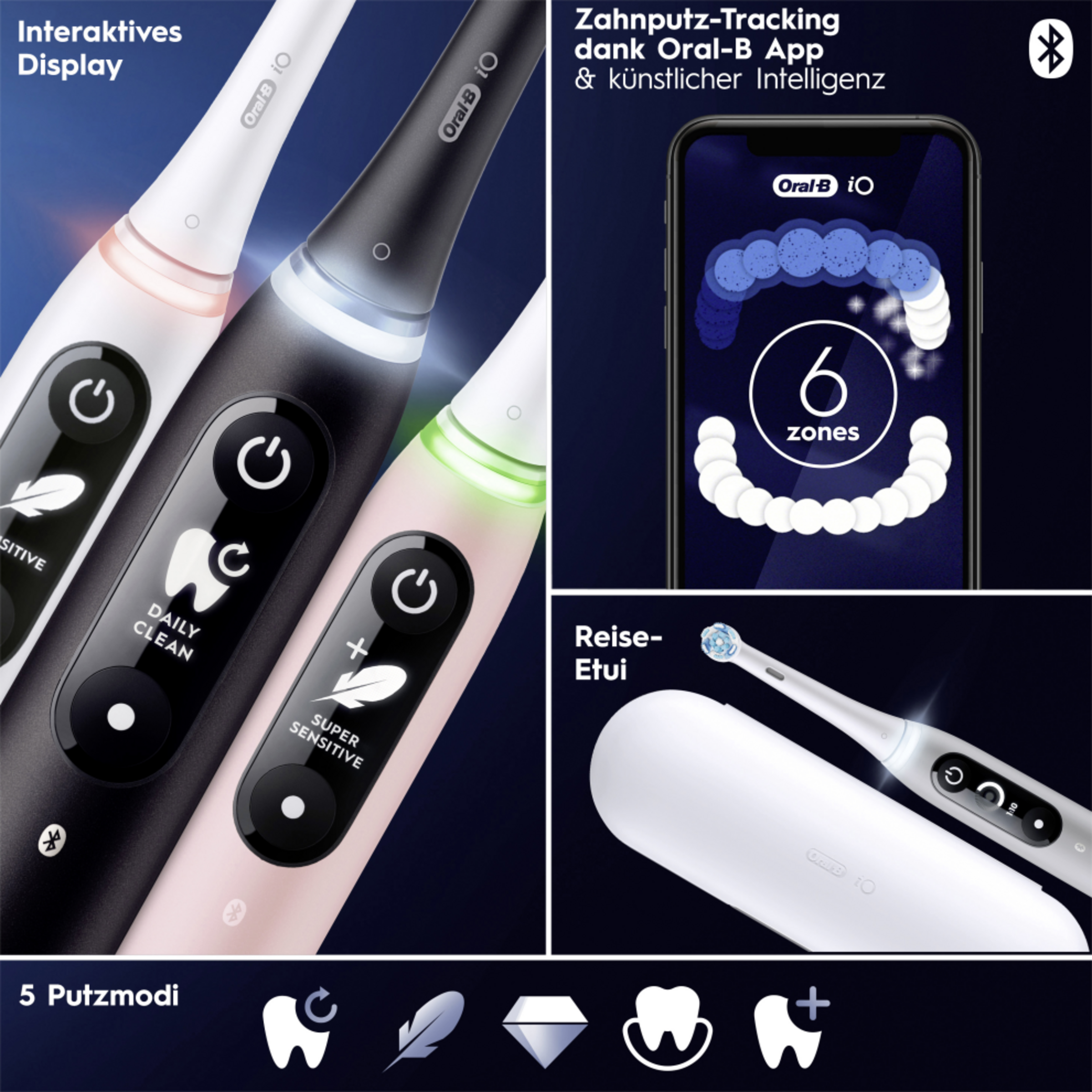 - die beste Reinigung von Oral-B mit revolutionärer magnetischer iO-Technologie für ein professionelles, sauberes Gefühl und ein sanftes Putzerlebnis