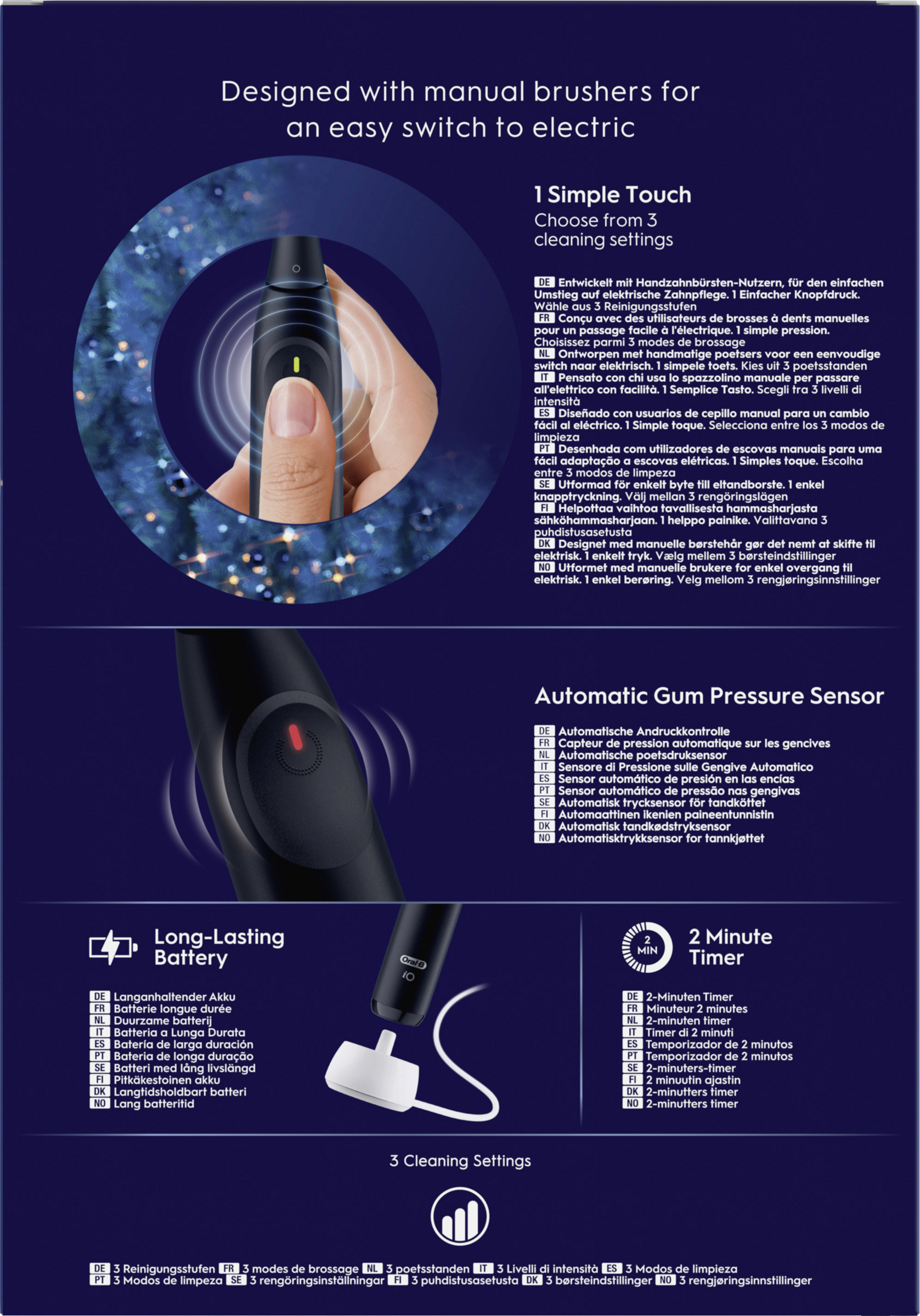 Die Oral-B iO 2 Elektrische Zahnbürste, entwickelt für den einfachen Einstieg in die elektrische Zahnpflege, kombiniert sanfte Mikrovibrationen mit dem von ZahnärztInnen inspirierten runden Bürstenkopf für eine effiziente aber schonende Reinigung. Für die besten Ergebnisse den Oral-B iO Bürstenkopf alle 3 Monate wechseln.