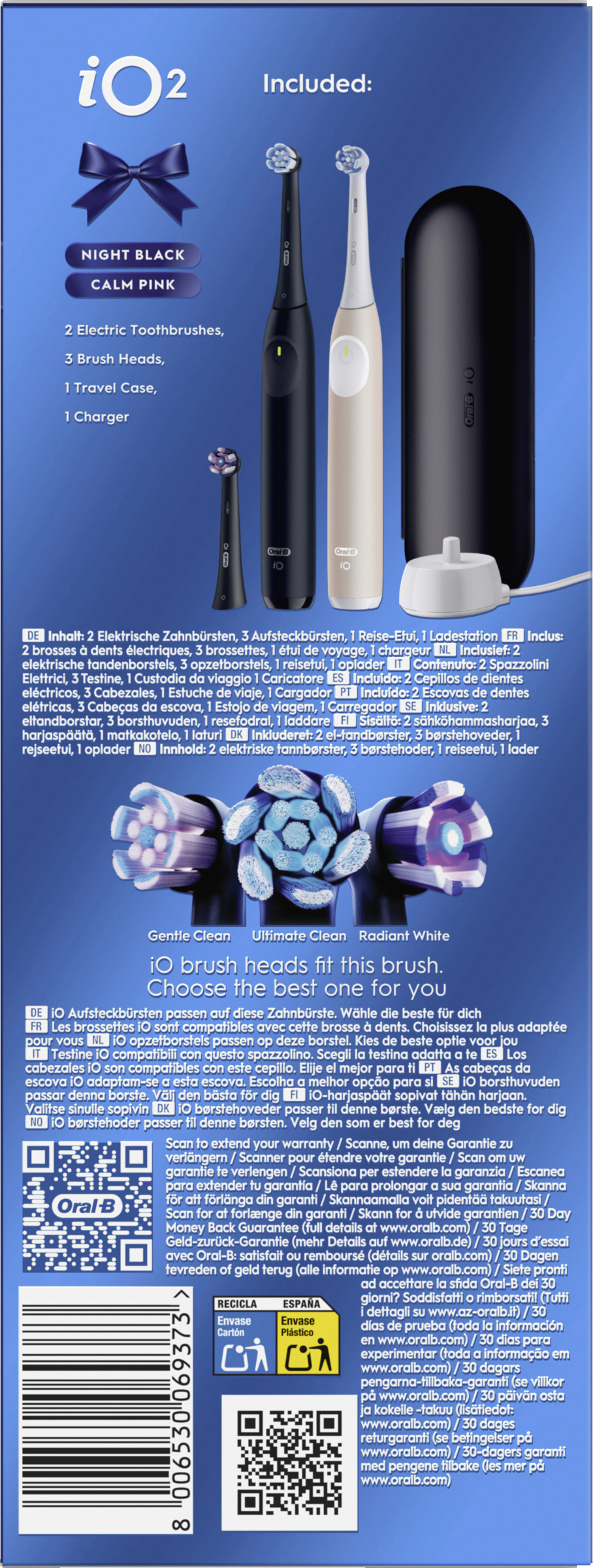 2x Oral-B elektrische iO Zahnbürste inkl 3 Aufsteckbürsten (1x Ultimative Reinigung, 1x Sanfte Reinigung, 1x Strahlendes Weiss), Reise-Etui, Ladestation