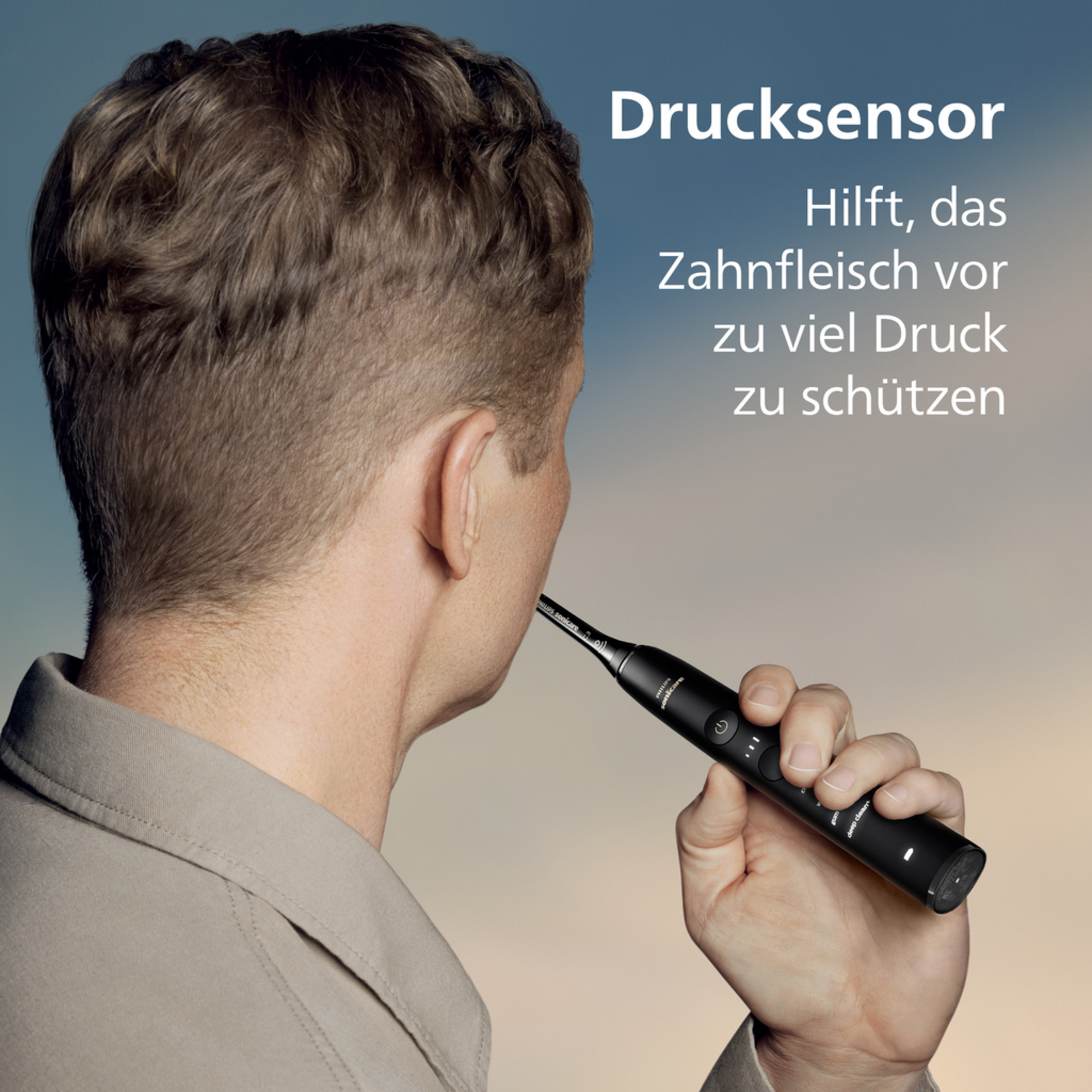 - integrierter Drucksensor schützt Zähne und Zahnfleisch vor zu starkem Druck