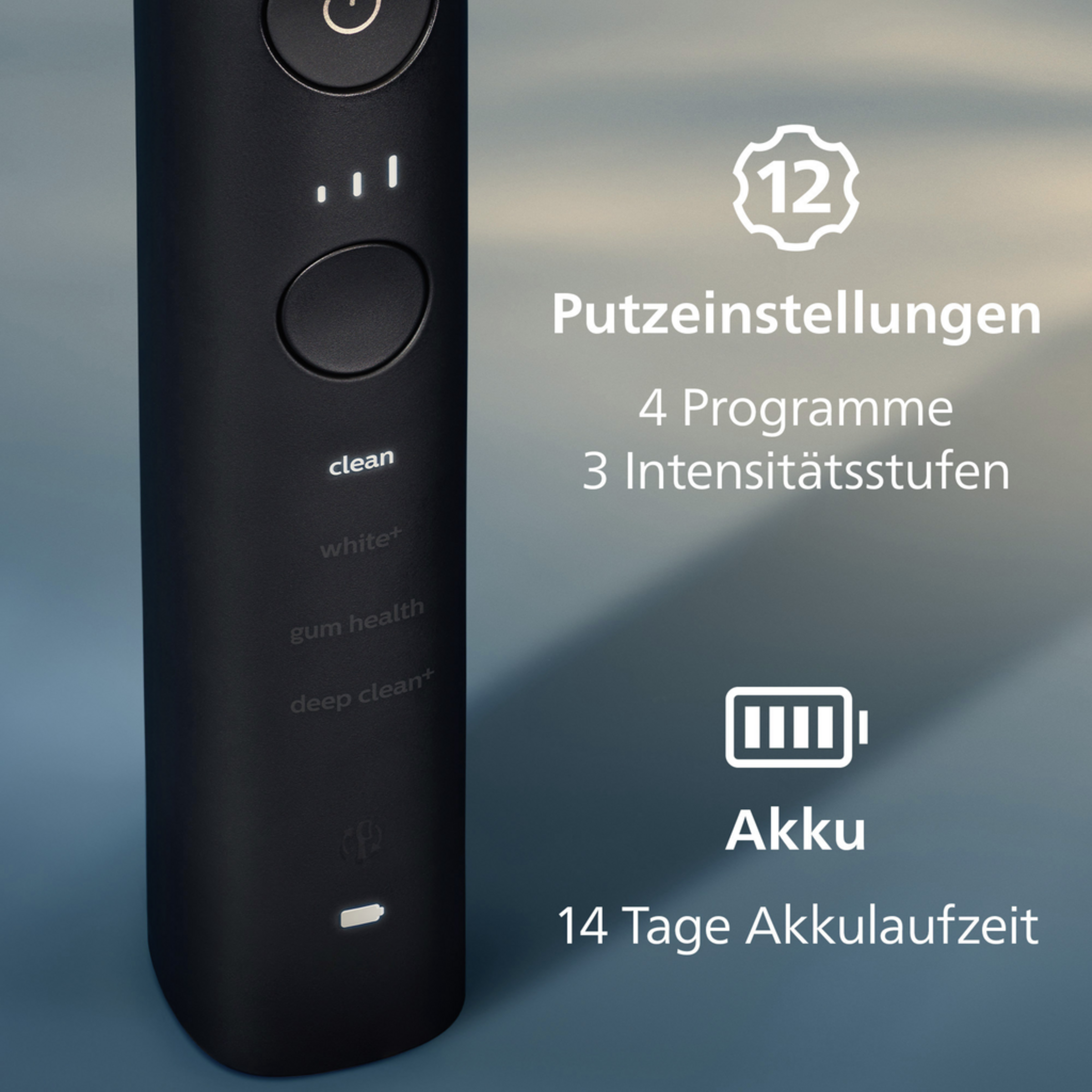 - 4 Putzprogramme (Clean, White+, Gum Health, Deep Clean+) mit 3 Intensitätsstufen für 12 Kombinationen