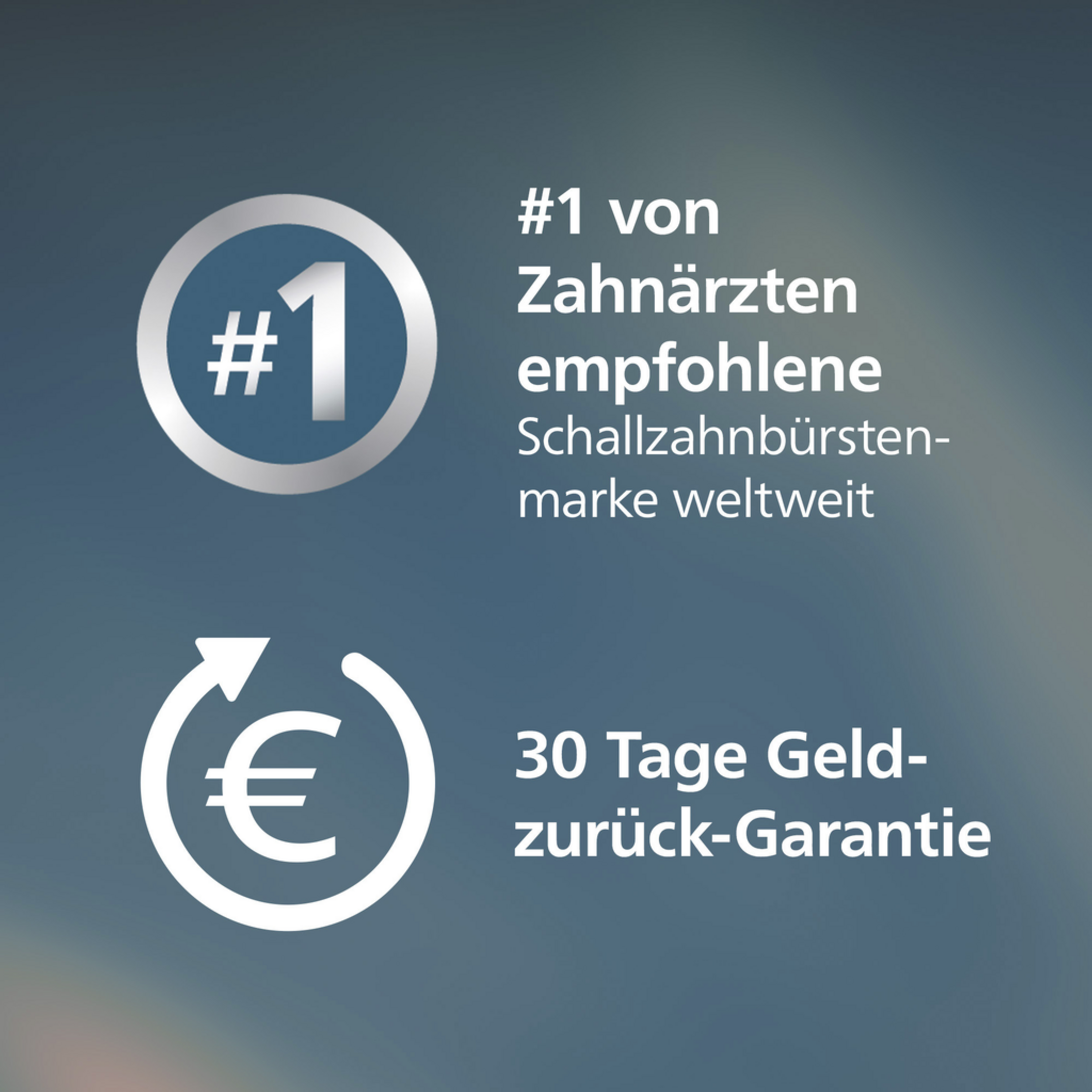 - Lieferumfang: 2x Handstück, 2x Premium C3 Plaque Defense Bürstenköpfe, 1x Ladeglas, 1x Ladestation