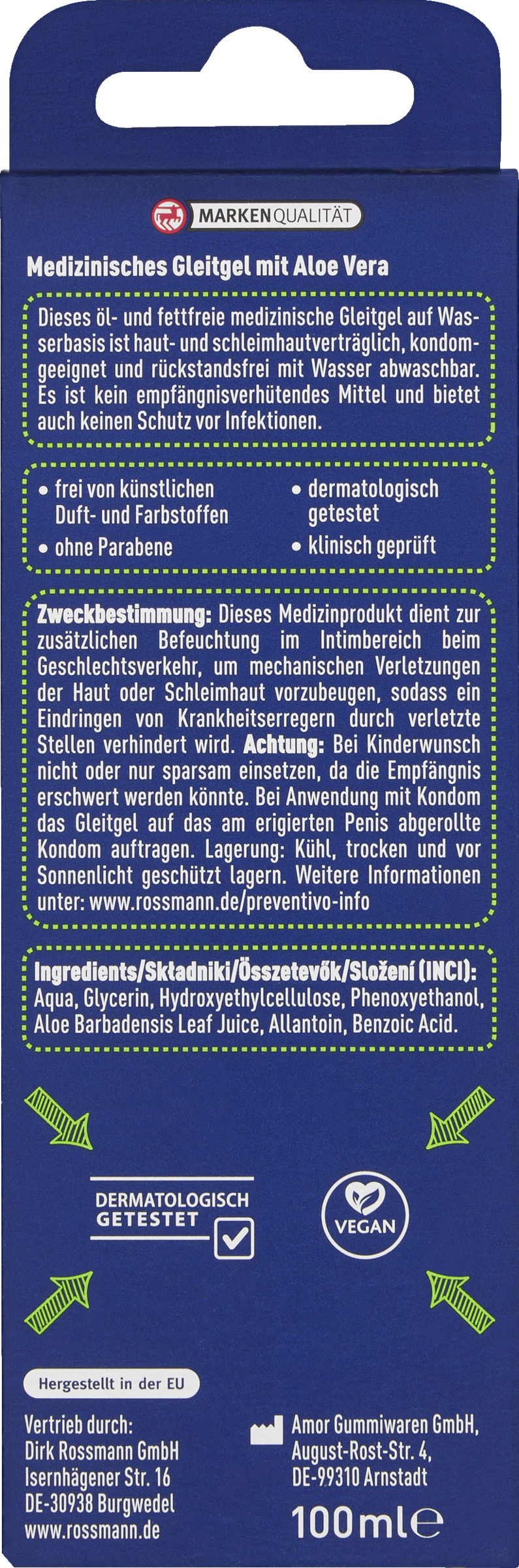 Dieses Medizinprodukt dient zur zusätzlichen Befeuchtung im Intimbereich beim Geschlechtsverkehr, um mechanischen Verletzungen der Haut oder Schleimhaut vorzubeugen, sodass ein Eindringen von Krankheitserregern durch verletzte Stellen verhindert wird.