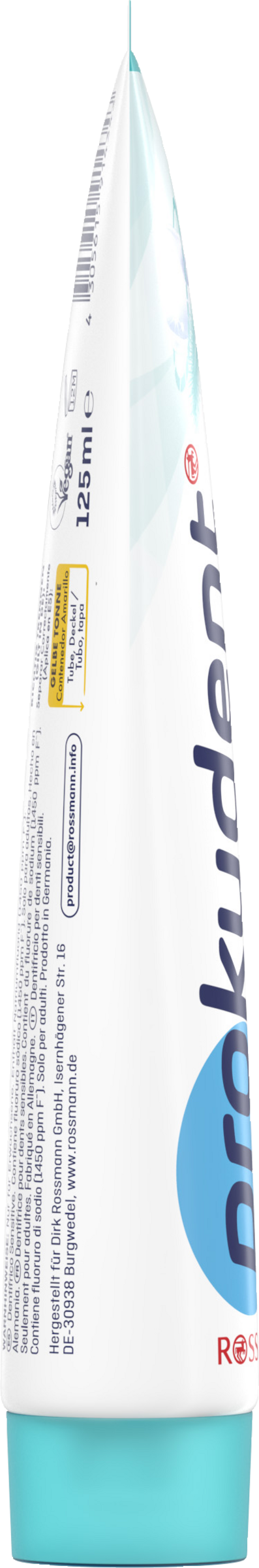 Prokudent Sensitiv Zahncreme wurde speziell zur schonenden und gründlichen Reinigung empfindlicher Zähne und sensibler Zahnhälse entwickelt. Die aktive Wirkstoff-Formel mindert die Schmerzempfindlichkeit und schützt vor Karies